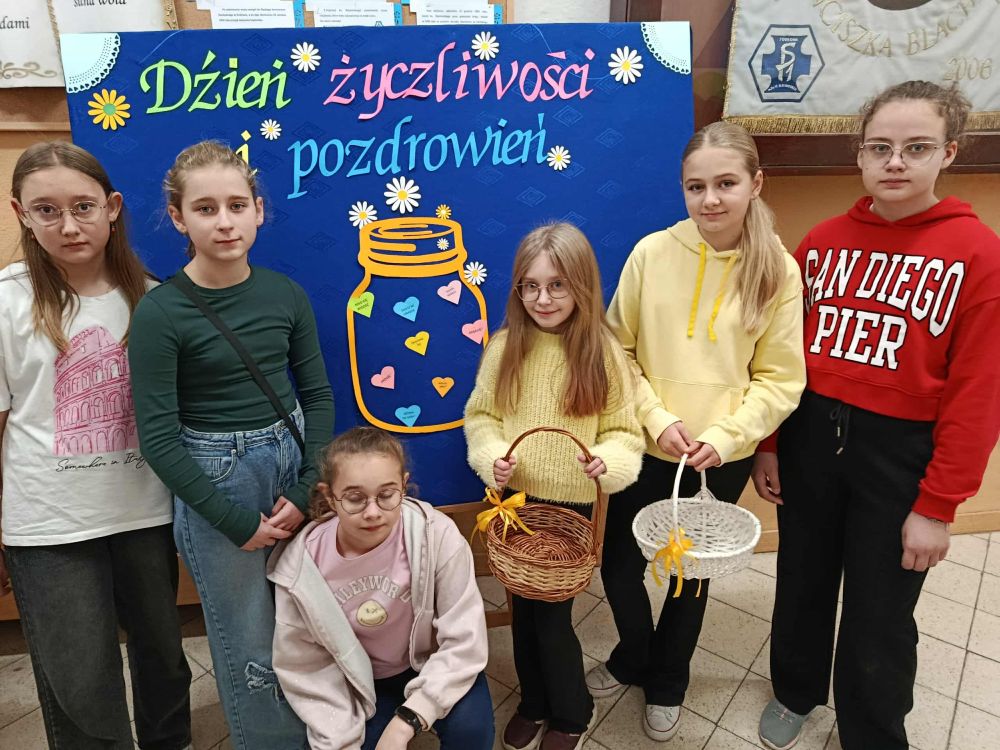Tego dnia uczennice klasy V a i b wręczały pracownikom szkoły, nauczycielom, uczniom i rodzicom „cukierki życzliwości” dołączając życzenia. „Cukierkiem życzliwości” z miłymi słowami poczęstowano całą społeczność szkolną. Chętni mogli wpisywać swoje dobre myśli i pozdrowienia na „serduszkach” i przypiąć je na gazetce znajdującej się na górnym korytarzu.