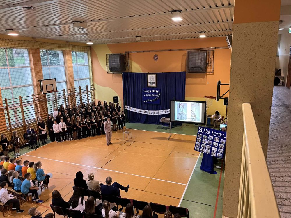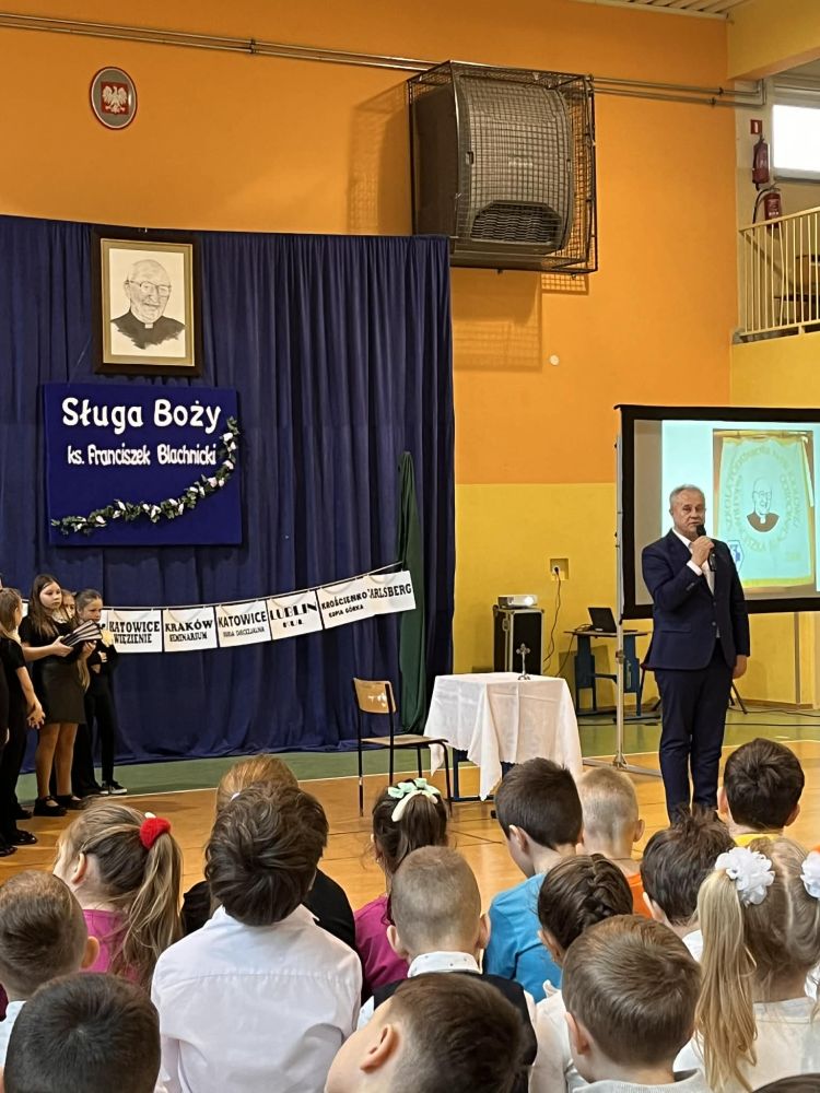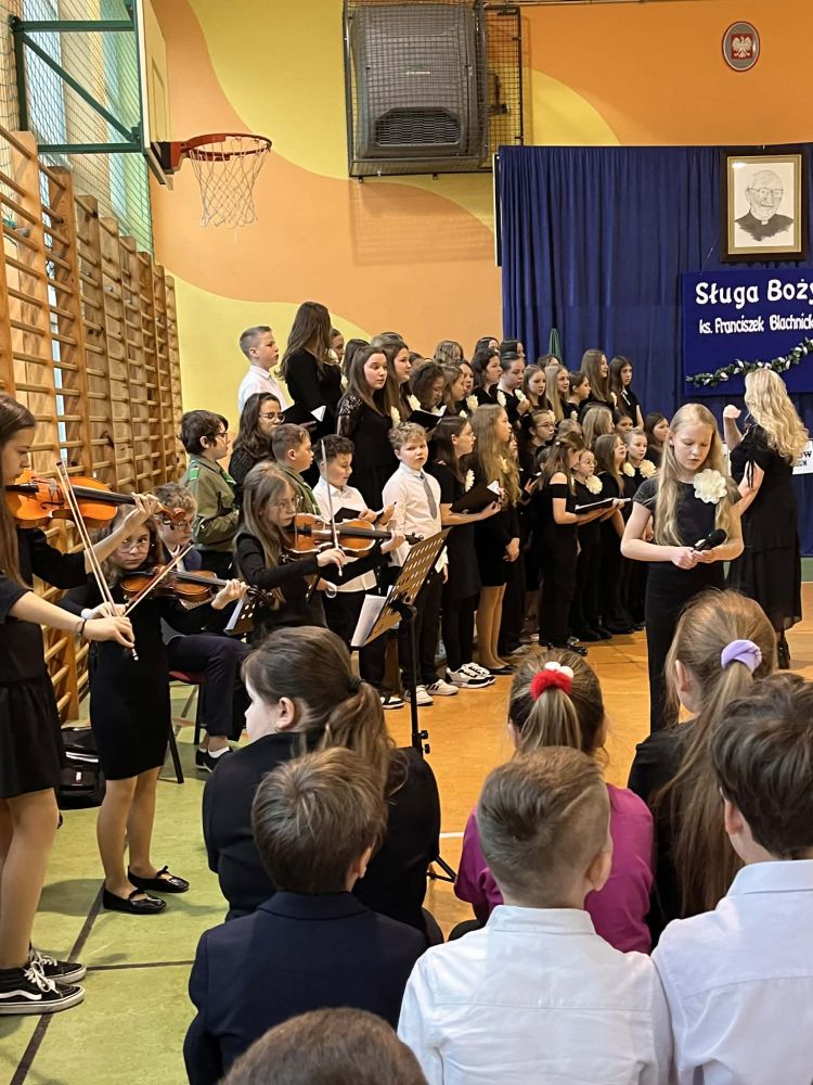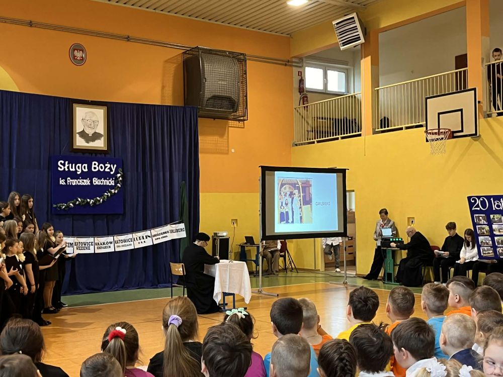 W uroczystości wzięli udział wszyscy uczniowie szkoły, a wielu z nich aktywnie włączyło się w przygotowanie tego wydarzenia. Swą obecnością uświetnił uroczystość Wójt Gminy Jodłowa p. Jan Janiga. Nasza społeczność szkolna poznała losy Patrona , jego bogatą w wydarzenia i aktywności drogę życia w formie pamiętnika , który był pełen cytatów zaczerpniętych ze wspomnień oraz zapisków samego ks. Blachnickiego. Aż czterech aktorów wcielało się w rolę Franciszka Blachnickiego (dziecka, młodego i starszego księdza). Uroczystość ożywiał nasz chór szkolny wraz z solistami i instrumentalistami, harcerze, przedstawiciele LSO, tańczące dzieci …