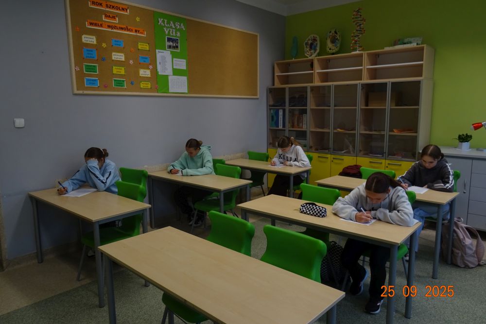 Dyktando z języka niemieckiego- Dzień Języków Obcych Opublikowano: 30 wrzesień 2025 Z okazji Dnia Języków Obcych uczniowie klasy 8 wzięli udział w szkolnym dyktandzie z języka niemieckiego. I miejsce zajęła Gabriela Warzecha, II miejsca zajęła Lena Sztogrin a III miejsce Marta Łącka.Gratulujemy!