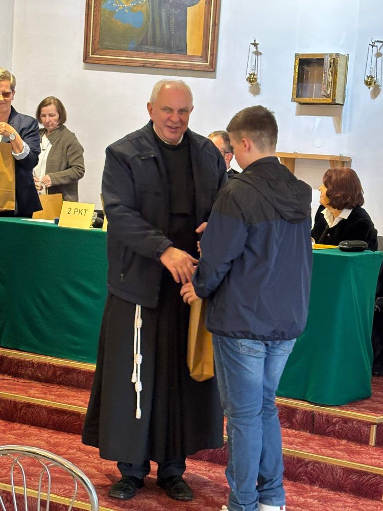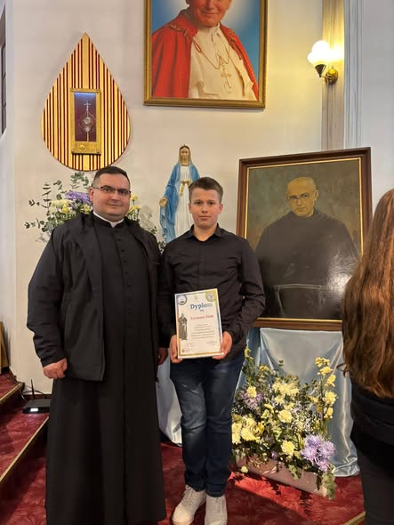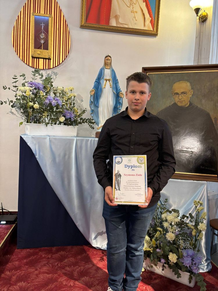 15 kwietnia 2026 r. w Siedlcach odbył się finał XX Ogólnopolskiej Franciszkańskiej Olimpiady wiedzy o św. Maksymilianie. Do etapu ogólnopolskiego zakwalifikowało pond 60 uczestników z wszystkich polskich diecezji. W gronie finalistów znalazł się również uczeń naszej szkoły Szymon Zioło, który po zaciętej i wyrównanej walce zakończył zmagania na części pisemnej. Serdeczne gratulacje.