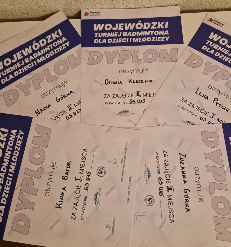 Pięć medali zdobyły dziś nasze uczennice w Wojewódzkim Turnieju Badmintona dla Dzieci i Młodzieży, który odbył sie w Ropczycach. W kategorii U13 pierwsze miejsce zajęła Lena Pytlik, a drugie Nadia Górka. W kategori - U15 Kinga Bator wywalczyła pierwsze miejsce i złoty medal, natomiast na trzecim miejscu uplasowały się Oliwia Klucznik i Zuzanna Górka. W zawodach uczestniczyły również Patrycja Kołczak, Ewelina Kaczka, Nikola Osielska, Lena Sękowska i Katarzyna Kapłon, które też zaprezentowały się z bardzo dobrej strony. W kategorii U17-19 nasze byłe uczennice Milena Górka i Anna Kapłon zajęły odpowiednio pierwsze i drugie miejsce.