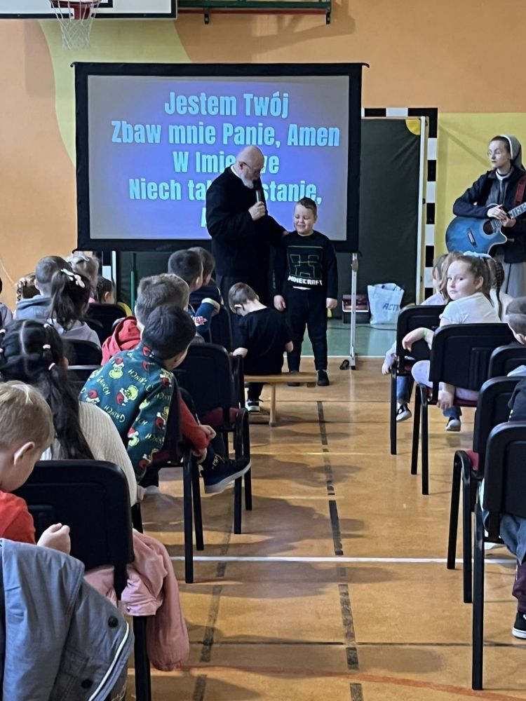 Najpierw spotykaliśmy się w szkole na naukach rekolekcyjnych, a następnie uczestniczyliśmy w wieczornych Mszach Świętych w naszym Sanktuarium. Siostra Angelika w piękny i prosty sposób przybliżała nam Ewangelię i wspomniała o czterech ważnych znakach: