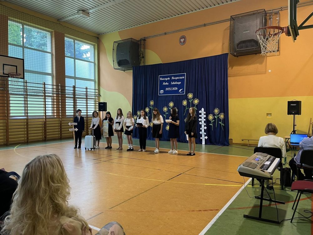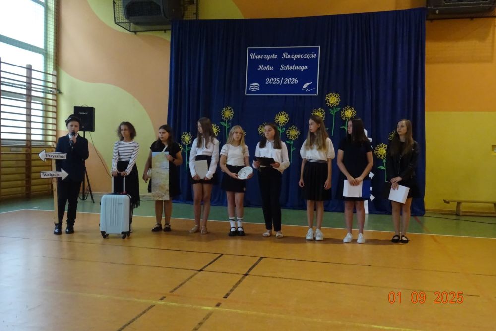 1 września uroczyście rozpoczęliśmy Nowy Rok Szkolny 2025/2026 mszą świętą w Sanktuarium Dzieciątka Jezus. Następnie po przejściu na salę gimnastyczną uczniowie wzięli udział w uroczystym apelu. W pierwszej części przypomniano o 86 rocznicy wybuchu II wojny światowej, w drugiej piosenką i wierszem pożegnali wakacje i przywitali nowy rok szkolny w inscenizacji pt