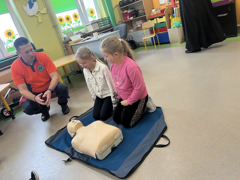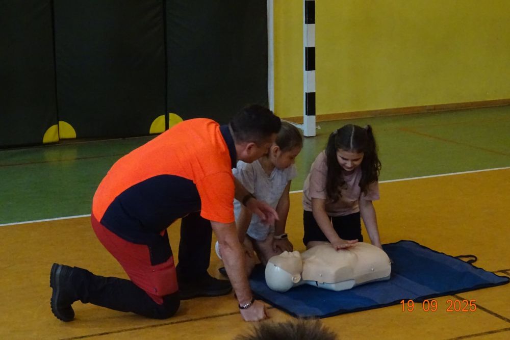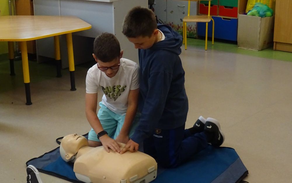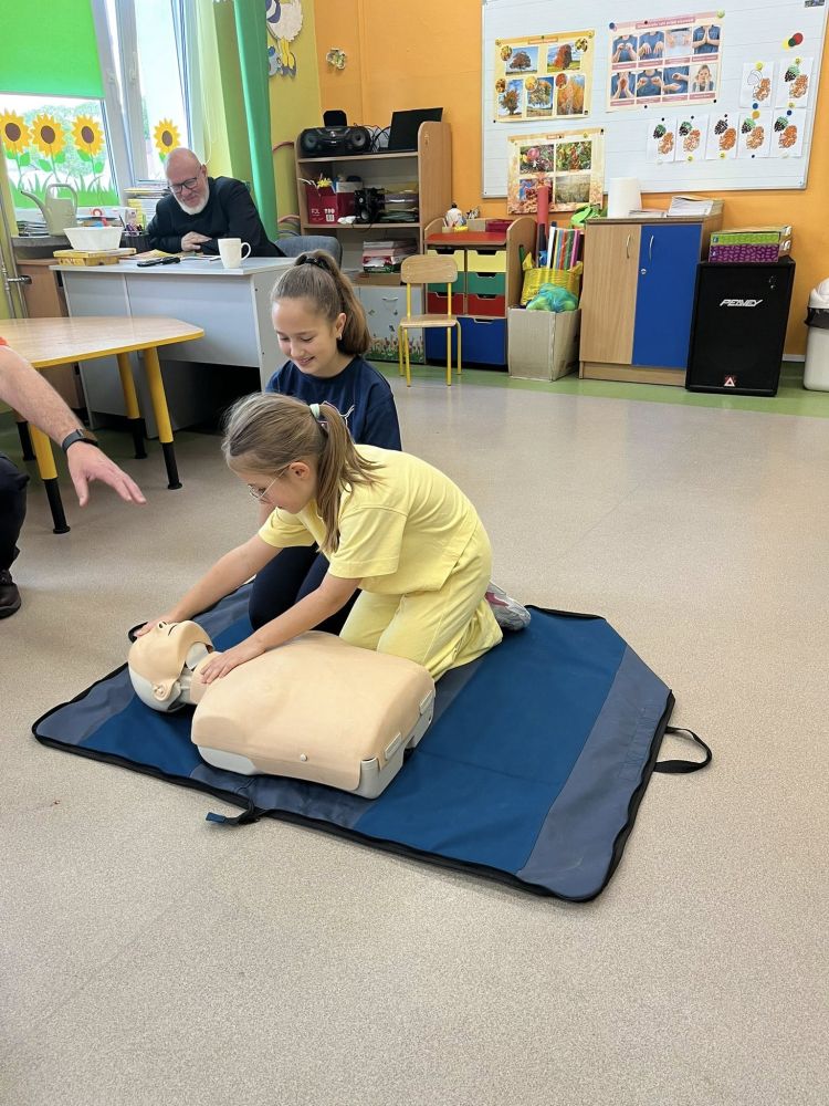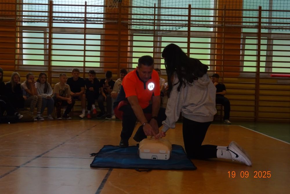 Największym zainteresowaniem cieszyła się część praktyczna – uczniowie mogli samodzielnie przećwiczyć resuscytację krążeniowo-oddechową (RKO).