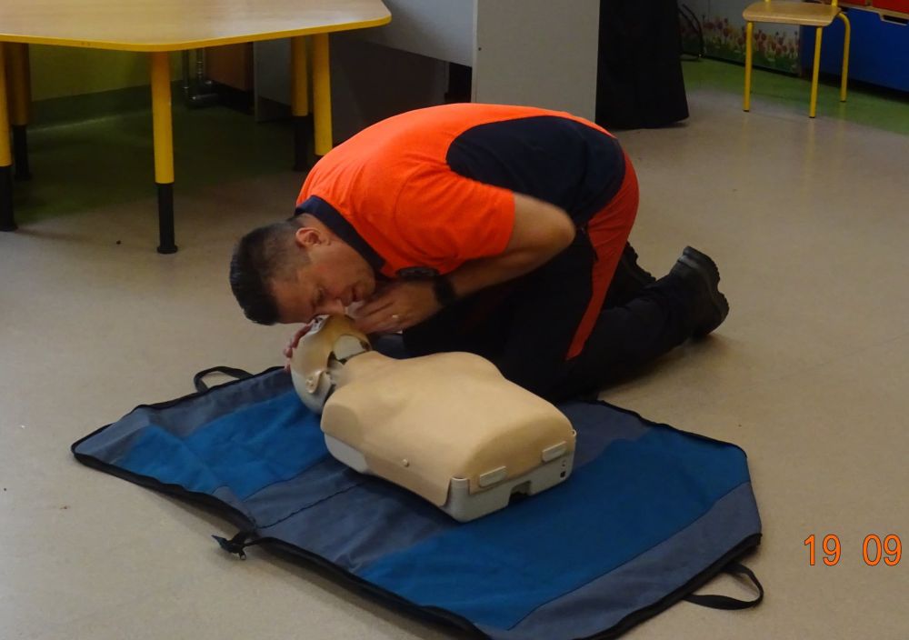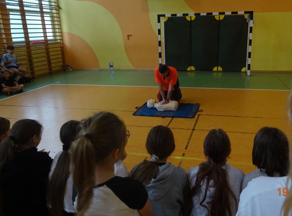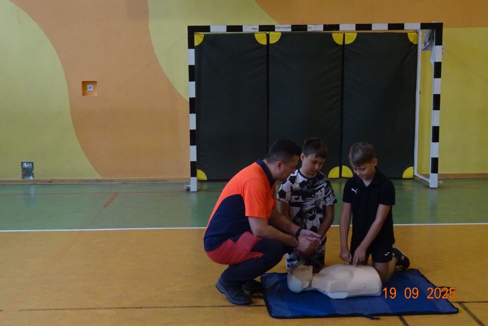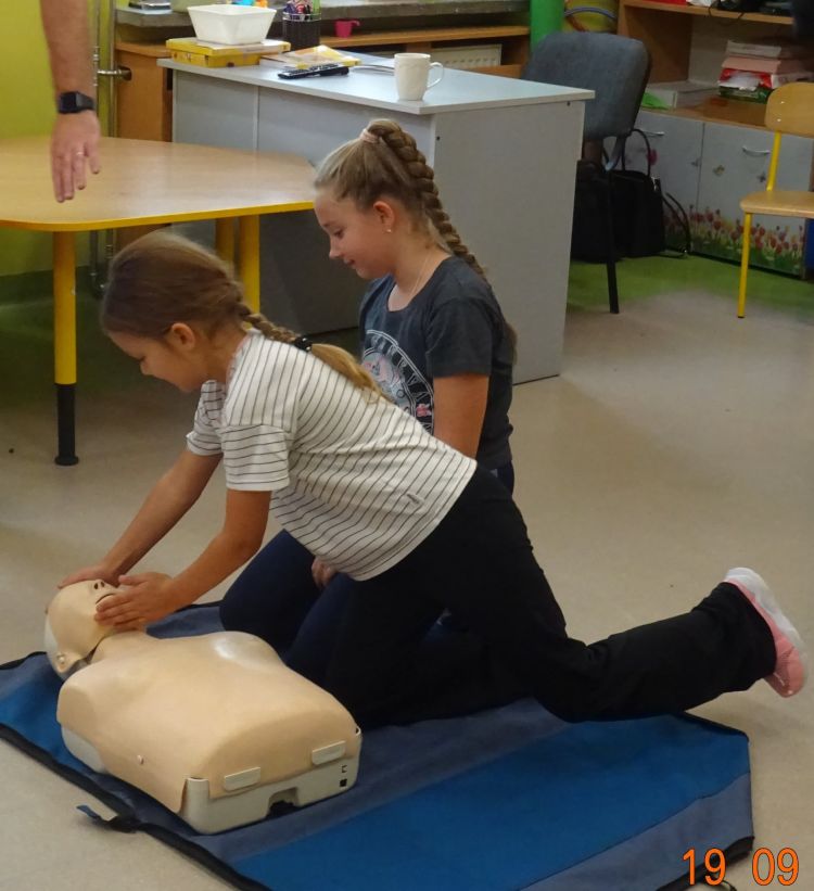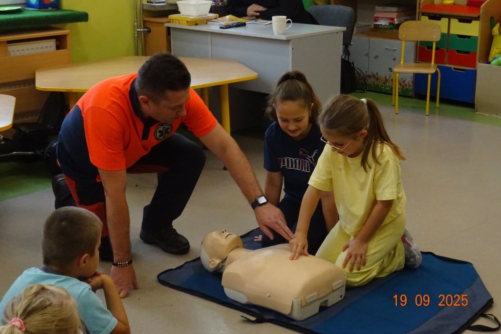 Największym zainteresowaniem cieszyła się część praktyczna – uczniowie mogli samodzielnie przećwiczyć resuscytację krążeniowo-oddechową (RKO).