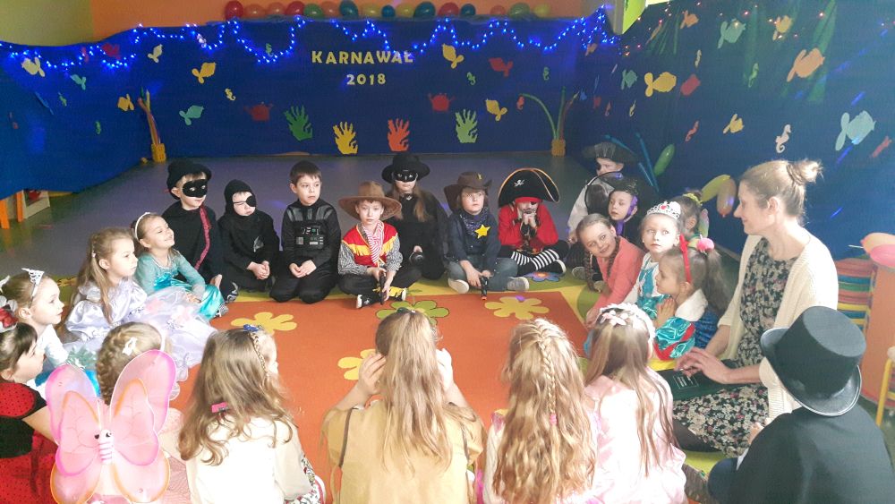 13 lutego 2018 roku o godzinie 9.00 w ,,sali balowej" naszego przedszkola pojawili się piraci, księżniczki, wróżki, motylki i wiele innych bajkowych postaci. A to wszystko za sprawą Karnawałowego Balu Przebierańców, na który wszyscy czekali z wielką niecierpliwością. Tematem przewodnim Balu były morskie opowieści, dlatego też dekoracje ,,sali balowej" przedstawiały morską głębię. Tancerze bawili się w rytmie znanych dzieciom przebojów. Wszystkim zabawom towarzyszyła radość, śmiech i aktywność dzieci, a cały Bal przebiegał w miłej i serdecznej atmosferze i dostarczył wszystkim niezapomnianych wrażeń. Kolejny już raz pozytywnie zaskoczyli nas rodzice szykując prawdziwie królewską ucztę. Bal był niezapomnianym przeżyciem dla naszych przedszkolaków i na pewno na długo pozostanie w naszej pamięci.