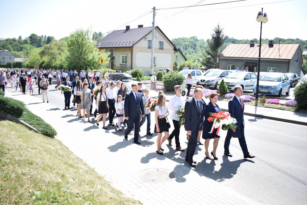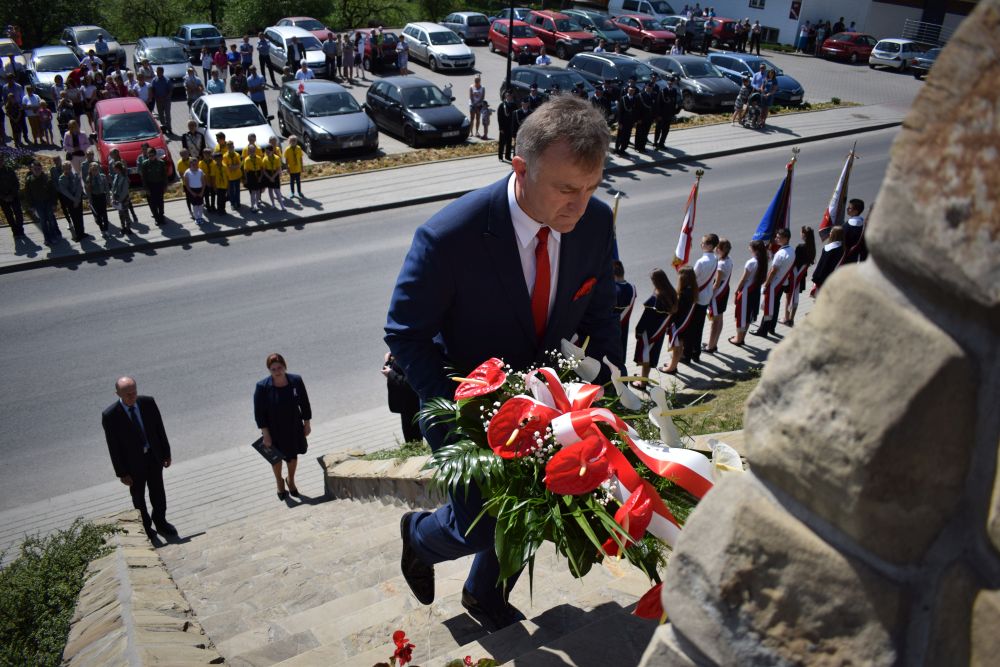 Po odśpiewaniu hymnu państwowego przemówienie związane z uroczystością wygłosił wójt gminy Jodłowa Pan Robert Mucha. Przy dźwiękach werbla składano wiązanki biało-czerwonych kwiatów. Na zakończenie uroczystości orkiestra strażacka z Jodłowej zagrała marsza.