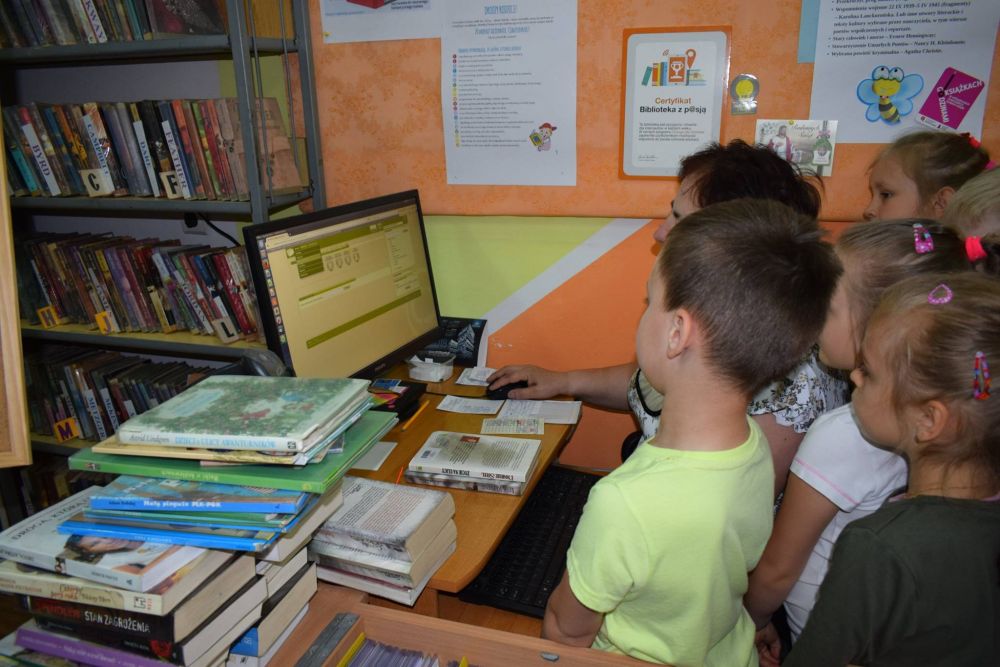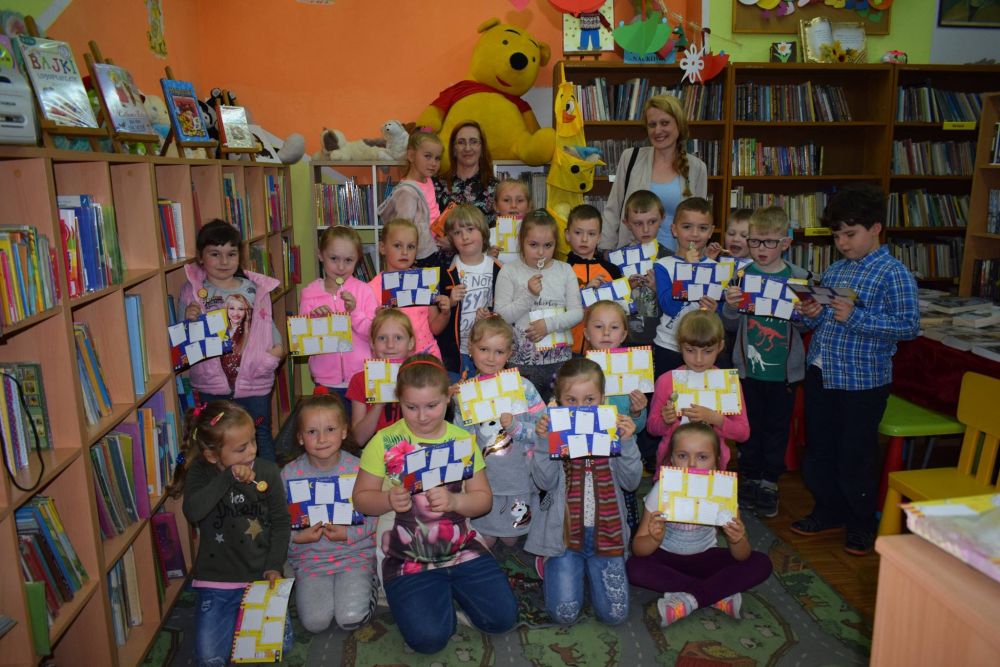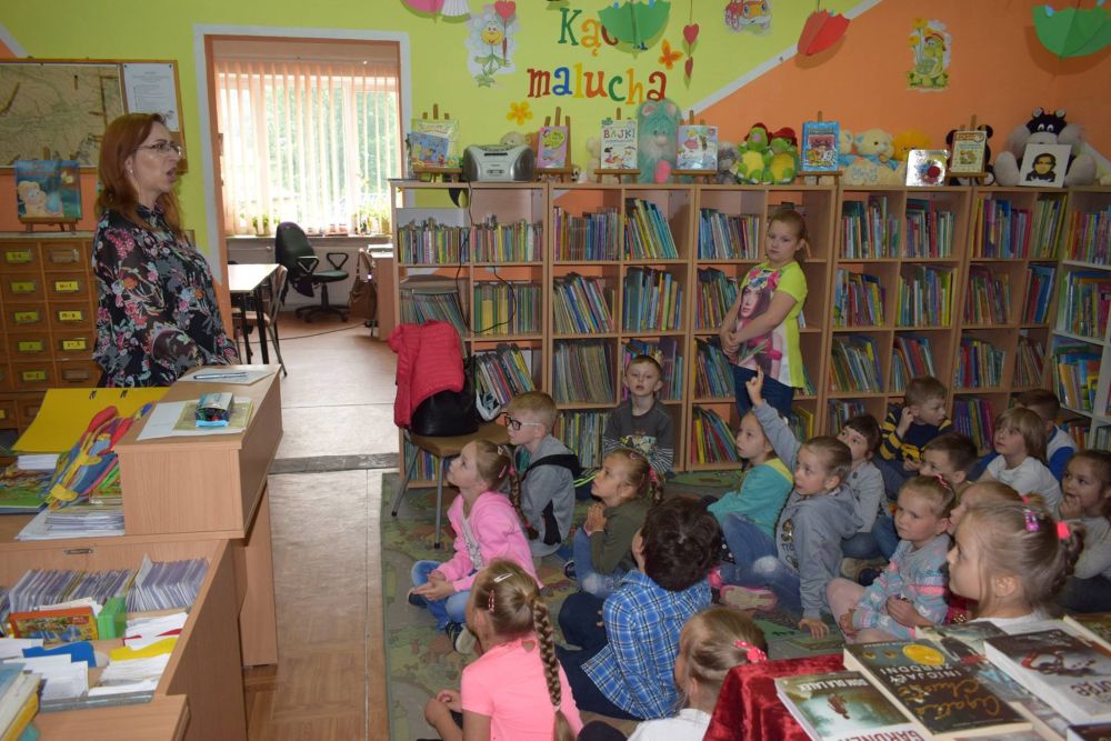 32202629 907051319477794 833710885103992832 oW związku z obchodzonym 8 maja Dniem Bibliotekarza i Bibliotek, najstarsza grupa przedszkolna udała się dziś do Gminnego Centrum Kultury i Czytelnictwa w Jodłowej. Przedszkolaki z wielką radością zapoznały się z magicznym dla nich miejscem. Kilkoro z nich było wcześniej w bibliotece ze swoimi rodzicami ale dla zdecydowanej większości była to pierwsza wizyta wśród tylu książek. Dzieci miały możliwość przejść między regałami w wypożyczalni dla dorosłych. Dowiedziały się jak można stać się czytelnikiem biblioteki oraz jak należy się w niej zachować. Wszystkim dzieciom bardzo spodobały się kolorowe i bogato ilustrowane książki, które z chęcią oglądały. Starszaki bardzo chętnie podjęły się rozwiązania przygotowanej przez panie krzyżówki. Spotkanie w bibliotece nie mogło się odbyć bez głośnego czytania. Pani Agnieszka przeczytała dzieciom jedną z przygód żółwia Franklina. Każdy przedszkolak wyszedł z biblioteki nie tylko z uśmiechem na twarzy, ale też lizakiem i planem lekcji otrzymanym od pań na pamiątkę. Wielu przedszkolaków obiecało, że wróci, aby móc się zapisać i korzystać z bogatej oferty dla dzieci. Bardzo dziękujemy pani Agnieszce i pani Marysi!