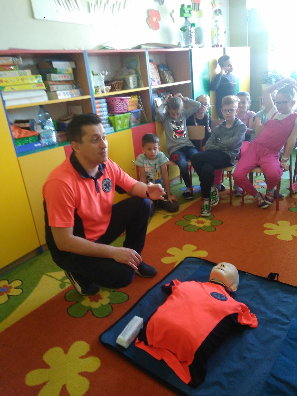 9 maja 2018 r. odbyło się w naszej szkole spotkanie uczniów klasy drugiej i klas trzecich z ratownikiem medycznym panem Andrzejem Dudkiem. Na początku spotkania Pan Andrzej przedstawił uczniom zawód ratownika, a następnie opowiedział o zagrożeniach zdrowia i życia na jakie najczęściej narażeni są ludzie. Omówił również sposoby reagowania i udzielania pierwszej pomocy. Uczniowie aktywnie uczestniczyli w zajęciach, sami zgłaszali przypadki o których słyszeli lub oglądali i zadawali pytania. Później Pan ratownik zaprezentował na fantomie resuscytację krążeniowo-oddechową, a następnie wychowawczynie i chętni uczniowie ćwiczyli tę ważną umiejętność pod czujnym okiem naszego gościa. Uczniowie stwierdzili, że zajęcia były ciekawe, warto było wziąć w nich udział, a zdobyta wiedza i umiejętności na pewno przydadzą się w życiu codziennym i być może przyczynią się do uratowania komuś życia.