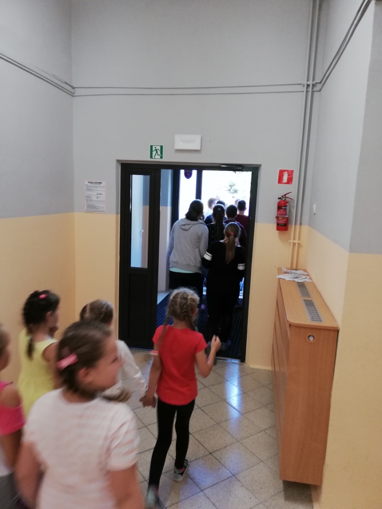 Dnia 21 września 2018 r. w naszej szkole odbyła się próbna ewakuacja. Głównym celem przeprowadzonych ćwiczeń było przypomnienie uczniom i pracownikom szkoły praktycznego zastosowania procedur dotyczących zachowania się w przypadku wybuchu pożaru lub powstania innego zagrożenia dla życia i zdrowia. Po usłyszeniu sygnału alarmowego nauczyciele wraz z uczniami i wszyscy pracownicy przedostali się drogami ewakuacyjnymi do punktu zbiórki. Następnie na sali gimnastycznej nastąpiło podsumowanie akcji. Stwierdzono, że ewakuacja przebiegała sprawnie, wszystkie osoby przebywające w budynku opuściły go bezpośrednio po sygnale alarmowym i wszystkie pomieszczenia były udostępnione do kontroli. Po przeprowadzonej akcji alarm został odwołany i uczniowie powrócili na lekcje.
