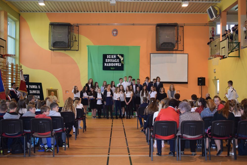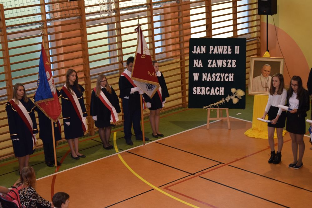 15 października 2018 r. obchodziliśmy w naszej Szkole aż dwie uroczystości. Ostatni rocznik jodłowskiego Gimnazjum świętował „Dzień Patrona”. Trzecioklasiści, pod kierunkiem Pań: Jadwigi Warzechy, Elżbiety Kołczak i Beaty Ogu, przygotowali z tej okazji akademię przybliżającą osobę Jana Pawła II, Jego życie, działalność, a także głoszone przez Niego idee. Mogliśmy przypomnieć sobie moment sprzed czterdziestu lat, kiedy to świat dowiedział się o objęciu Stolicy Piotrowej przez Papieża Polaka i na zakończenie wspólnie zaśpiewać Jego ulubioną pieśń - „Barkę”.