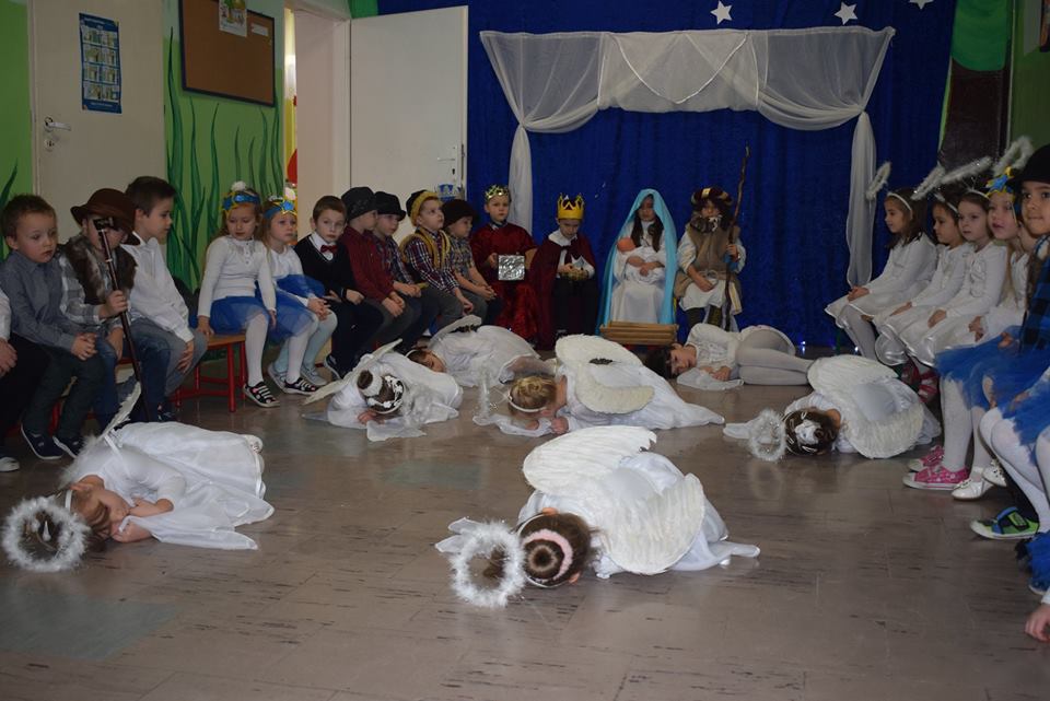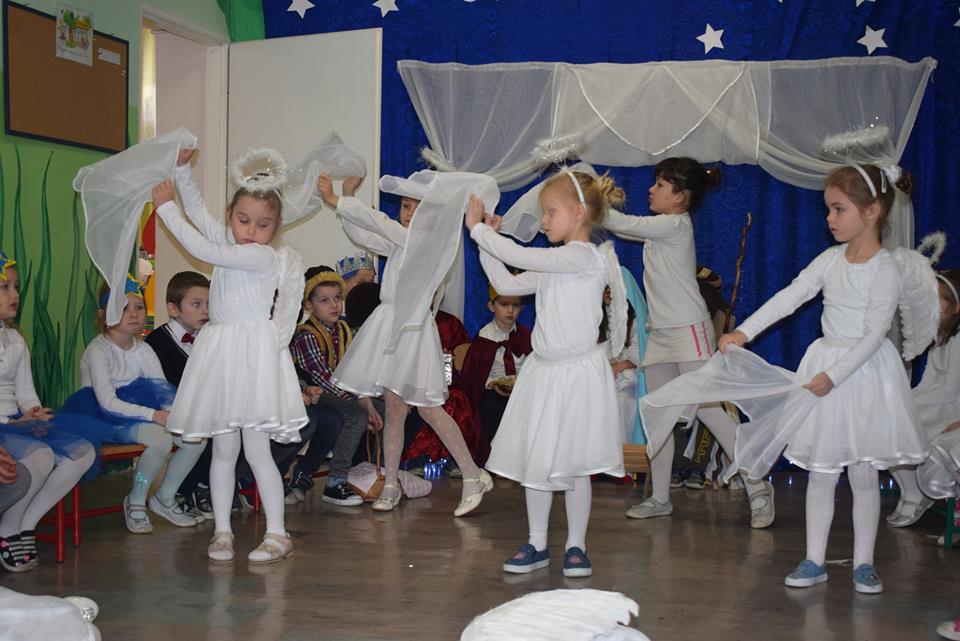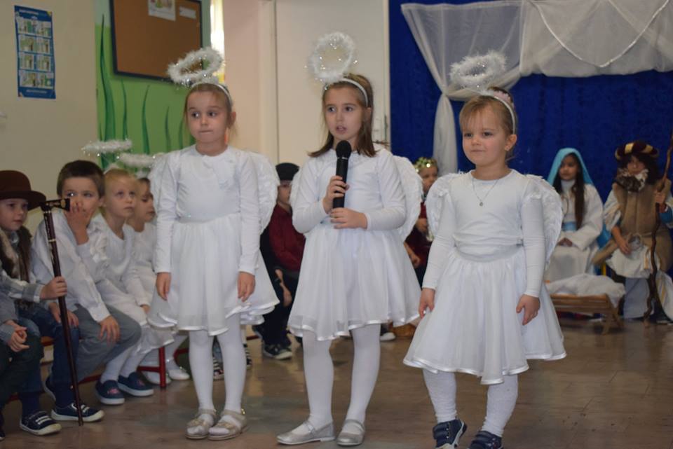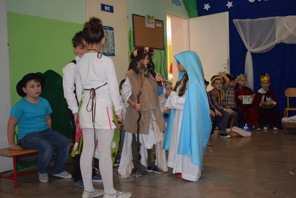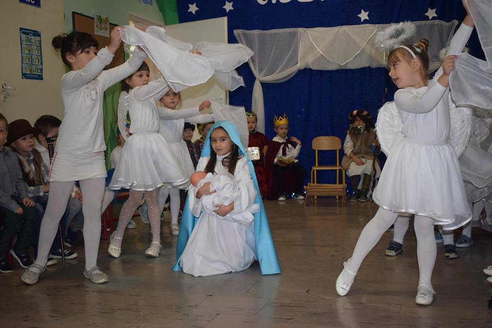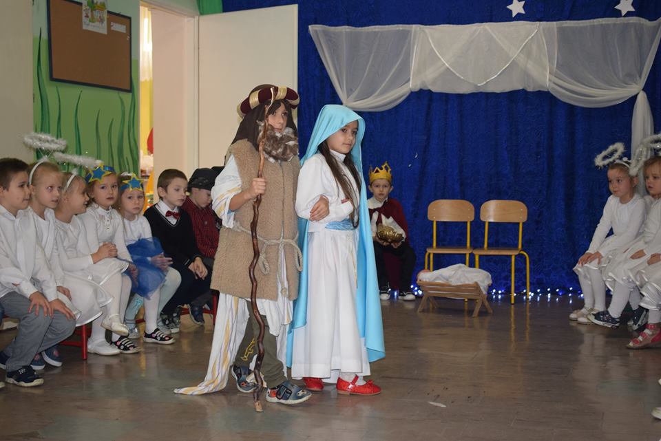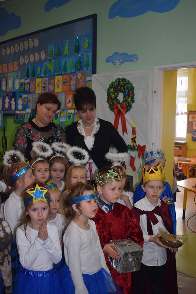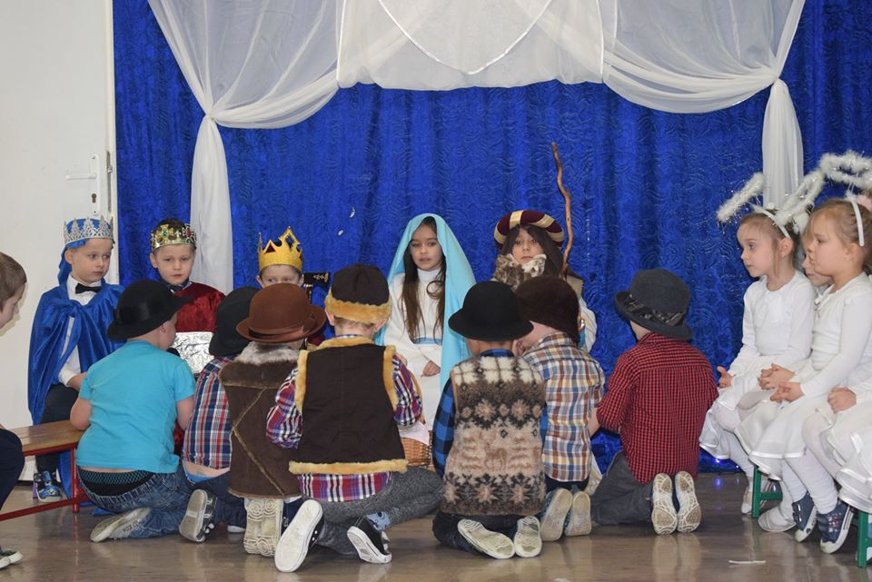 Uroczystość "Jasełek" od wielu lat wpisana jest do kalendarza uroczystości w naszej Szkole. W tym roku w atmosferę Świąt Bożego Narodzenia wprowadziło wszystkich przedstawienie jasełkowe w wykonaniu dzieci z naszego Przedszkola. Mali aktorzy z dużym przejęciem i poświęceniem wiernie odgrywali swoje role we wspaniałych strojach przygotowanych z pomocą rodziców. Po wspólnym odśpiewaniu kolęd przez widzów i aktorów wszyscy złożyli sobie życzenia — zdrowych i radosnych Świąt Bożego Narodzenia oraz wszystkiego dobrego w Nowym Roku. W tym roku mieliśmy na przedstawieniu wyjątkowych gości - Panią Dyrektor, nauczycieli i dzieci ze szkoły w Tarnopolu na Ukrainie. Bardzo się cieszymy, ze przedstawienie im się podobało.