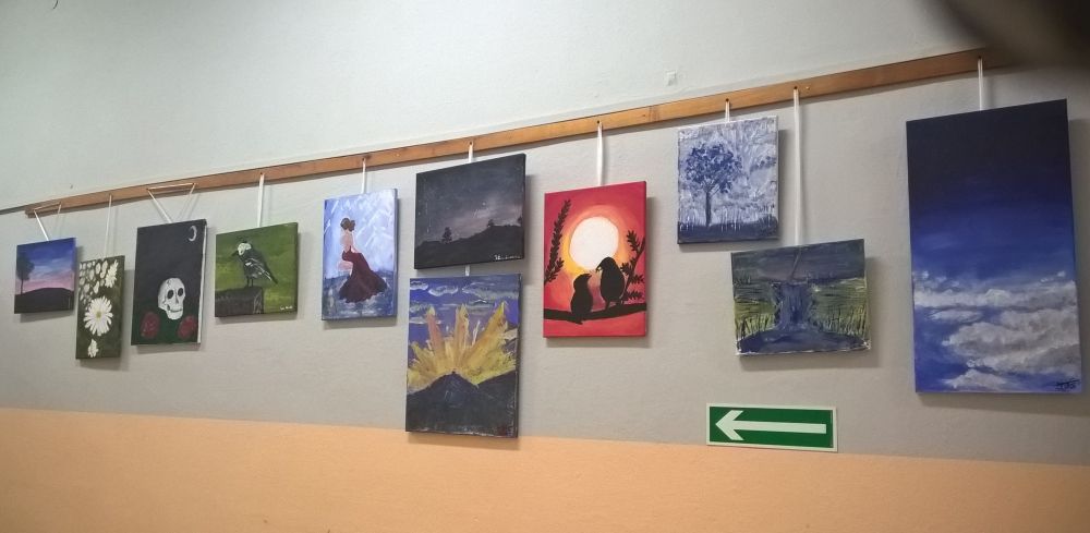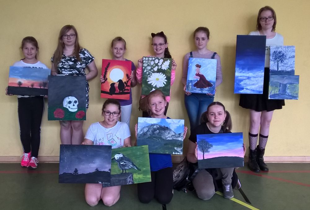 1 czerwca 2019 r. z inicjatywy grupy uczniów naszej szkoły odbyły się warsztaty malarskie. Ze względu na niesprzyjające warunki pogodowe, niemożliwe okazało się zorganizowanie tych zajęć w plenerze. Farbami akrylowymi (lub olejnymi) uczestniczki warsztatów wykonały prace na płótnie wg własnych pomysłów. Efekty kilkugodzinnej pracy można podziwiać na wystawie zorganizowanej na korytarzu szkolnym. Zajęcia prowadziła Pani Maria Kos.