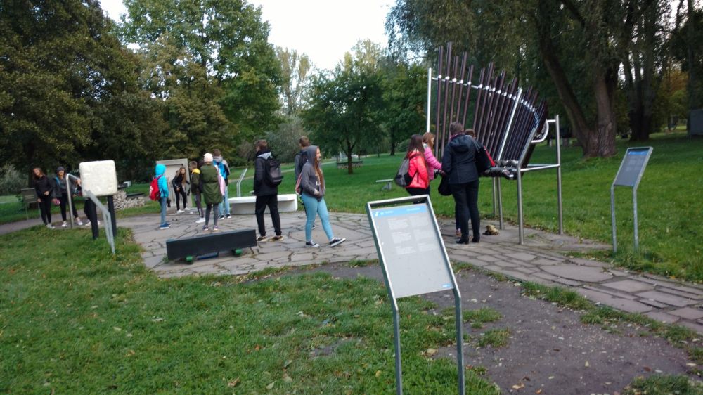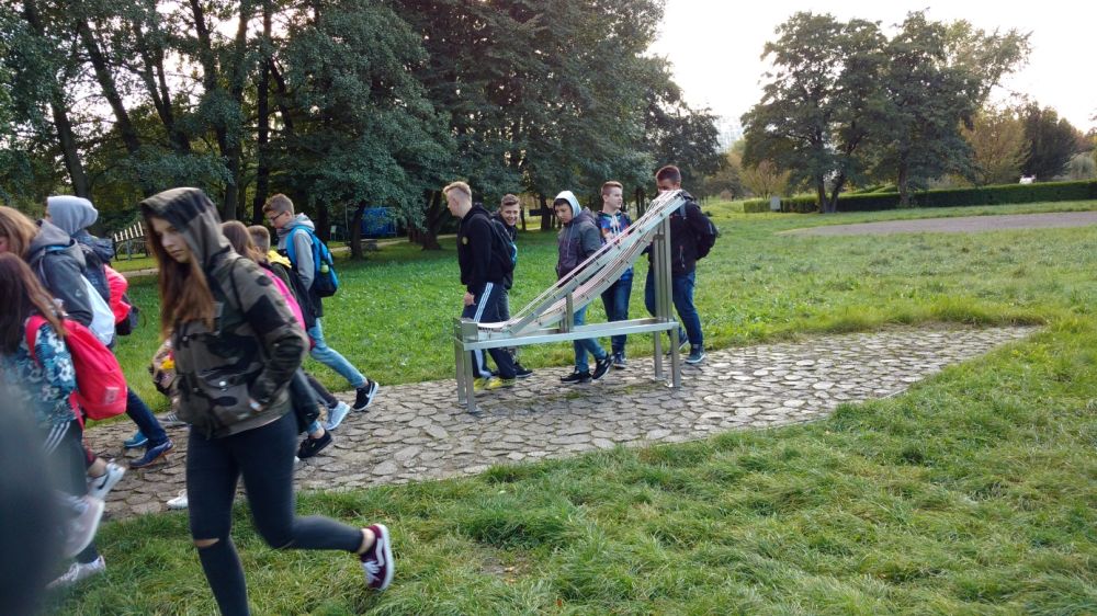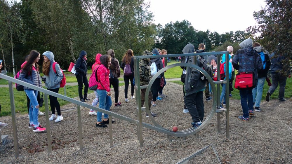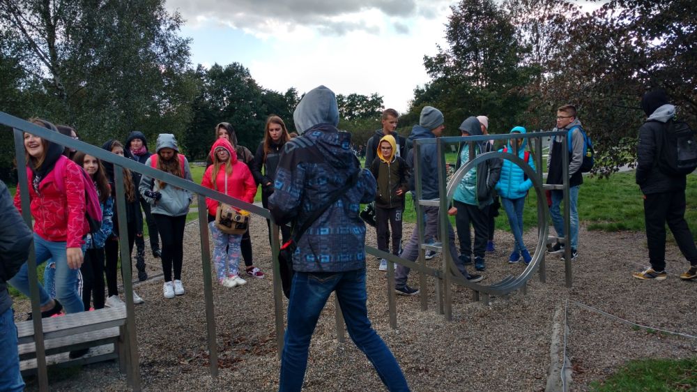 Drugą atrakcją tego dnia było zwiedzanie Ogrodu Doświadczeń im. Stanisława Lema. Jest to sensoryczny park edukacyjny, z interaktywną ekspozycją przybliżającą prawa fizyki. Wśród parkowej zieleni znajdują się tam urządzenia, których zadaniem jest pobudzać do myślenia, uczyć, ale i bawić – tak,by przyswajanie wiedzy stało się przyjemnością. Uczniowie mogli samodzielnie nadać i odebrać wiadomość z użyciem telegrafu akustycznego, znaleźć się we wnętrzu kalejdoskopu, wytworzyć wir wodny i obserwować jego zachowanie oraz wykonać wiele innych eksperymentów.