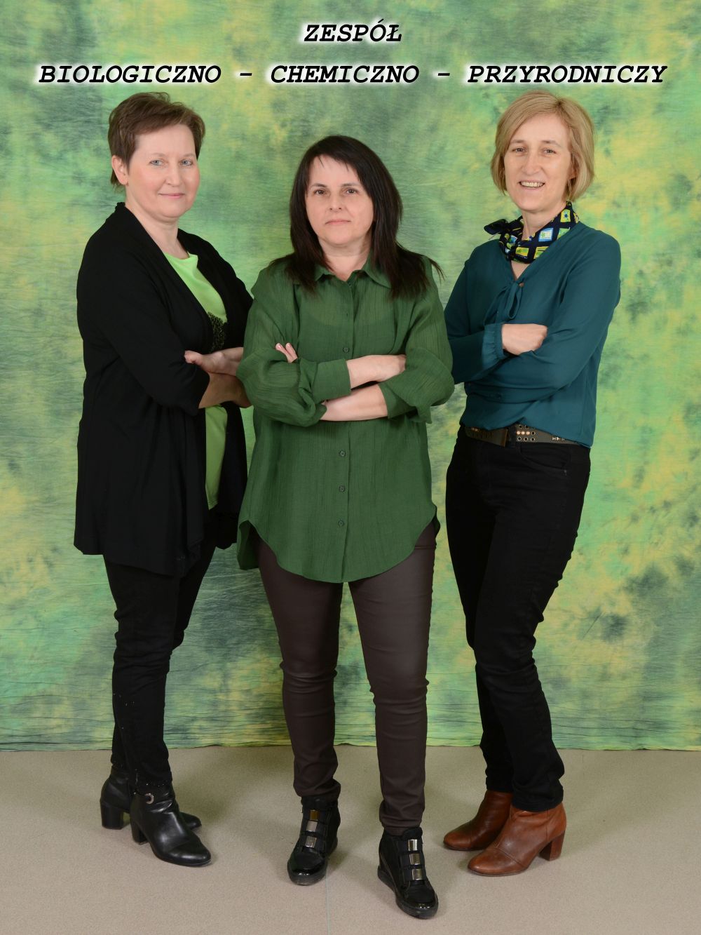 Panie tworzące zespół biologiczno – chemiczno – przyrodniczy przekazują wiedzę o otaczającym nas świecie i kształtują ekologiczną świadomość młodego pokolenia – p. Maria Kos (biologia i chemia), p. Elżbieta Kołczak (biologia i chemia), p. Maria Warzecha (przyroda).