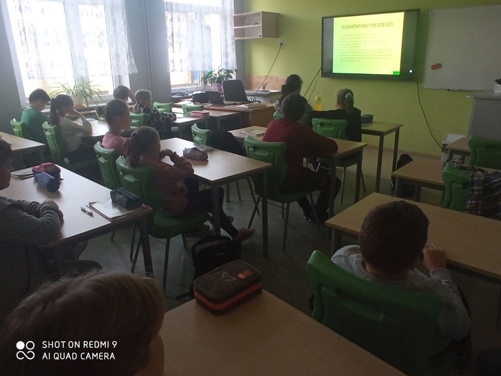 W dniu dzisiejszym nawiązując do akcji "Odblaskowa szkoła" w klasie V a została przeprowadzona przez nauczyciela techniki krótka prelekcja oraz pogadanka na temat bezpieczeństwa na drodze. Dbałości o siebie, o swoje bezpieczeństwo w ruchu drogowym jest bardzo często poruszane podczas zajęć lekcyjnych, ale także na spacerach i wycieczkach szkolnych. Uczniowie bardzo chętnie brali udział w dyskusji, przedstawiali przykłady bezpiecznego zachowania się na drodze. Była to lekcja przypominająca zasady i przepisy, które uczniowie przyswoili w młodszych klasach.