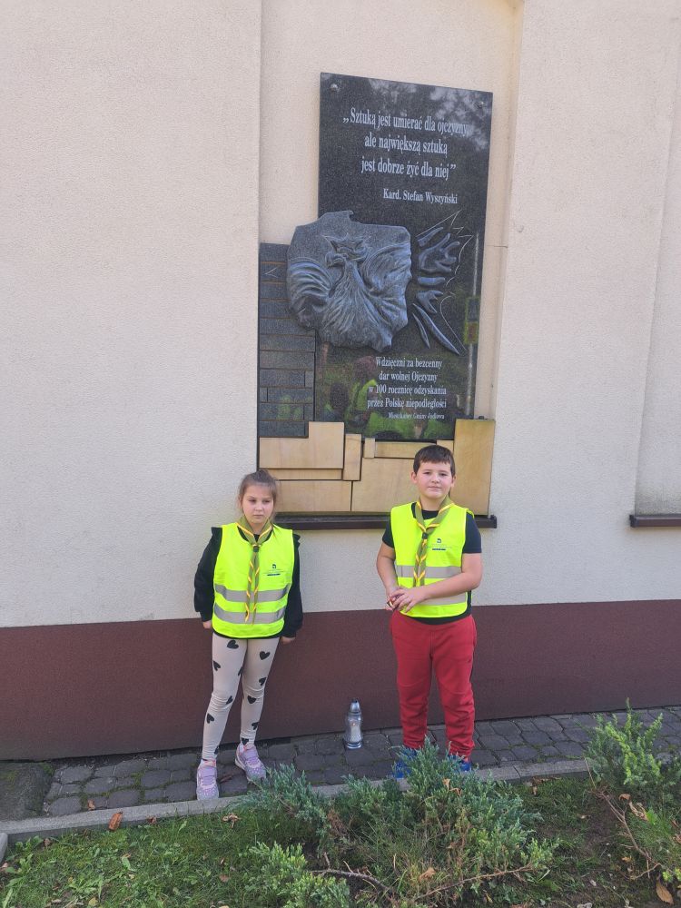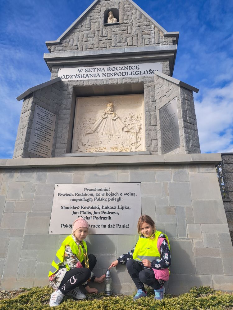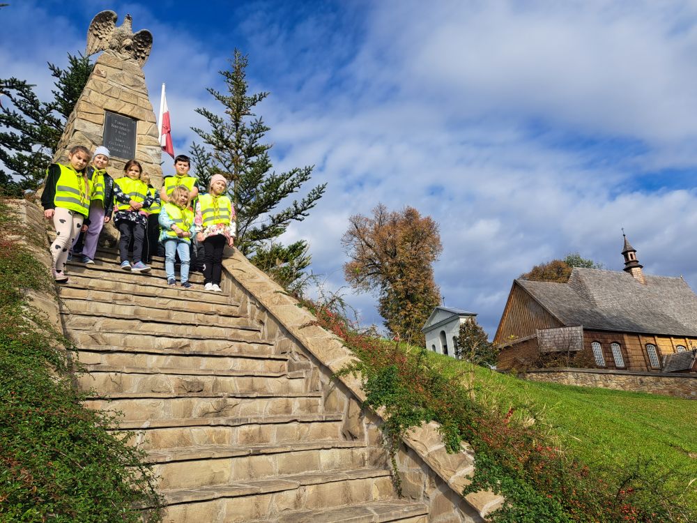 23.09.2023 zuchy z 3 GZ "Szare Wiewiórki" wybrały się na spacer krajobrazowy po naszej urokliwej i malowniczej miejscowości wędrując szlakiem historii. Po drodze mijaliśmy lokalne tablice i pomniki oraz miejsca związane z historią. Zapaliliśmy znicze pod tablicą i pomnikiem wzniesionymi z okazji 100 rocznicy odzyskania niepodległości przez Polskę, pod pomnikiem Konstytucji 3 Maja, przy tablicach z nazwiskami pomarłych Jodłowian w czasie wojen znajdującymi się na ścianach zabytkowego kościółka p.w. św. Mikołaja oraz przy grobie księży pracujących w naszej parafii. Abyśmy byli bardziej widoczni i bezpieczni wszystkie zuchy założyły kamizelki odblaskowe i pamiętały o zasadach prawidłowego poruszania się w obrębie jezdni.