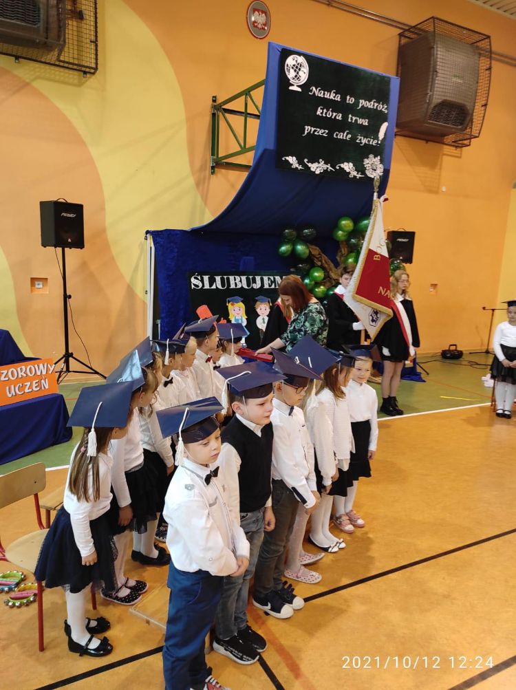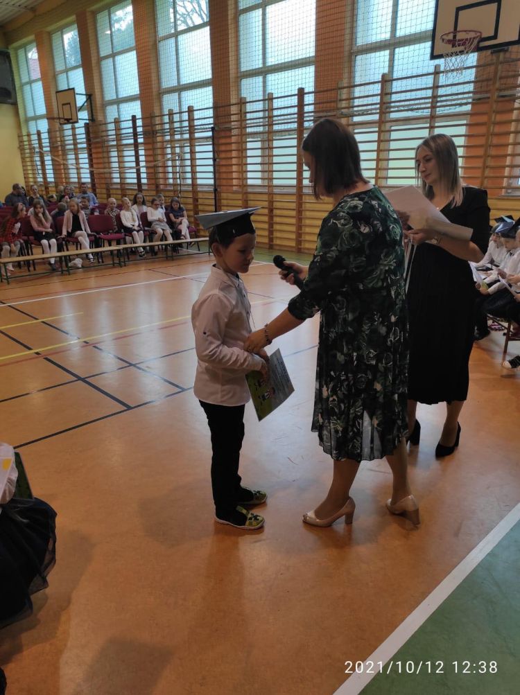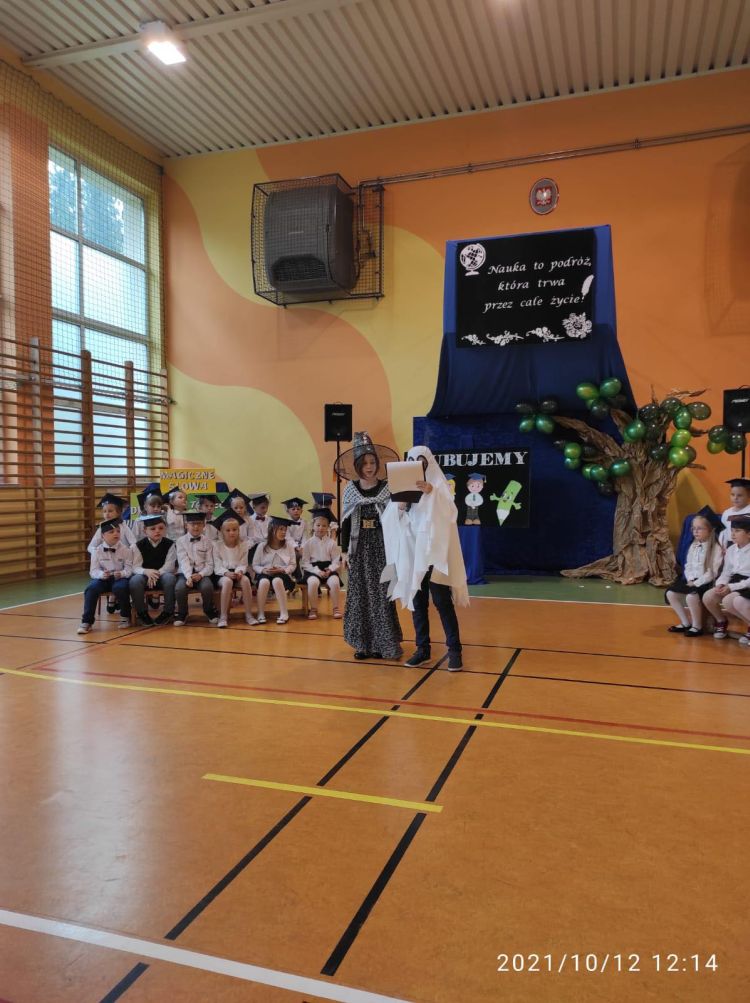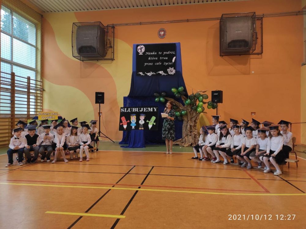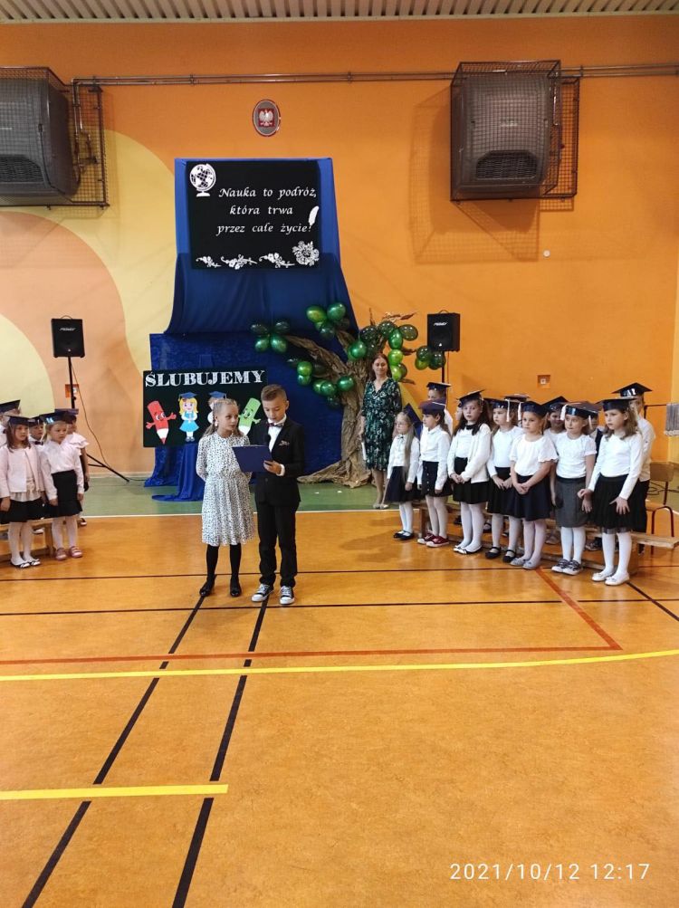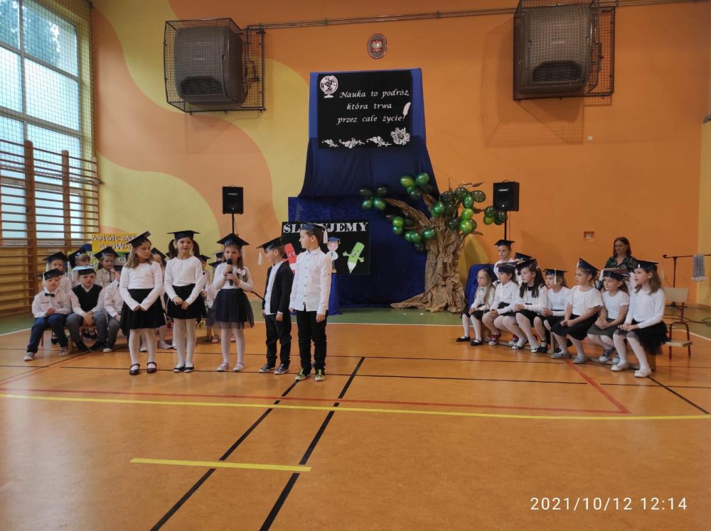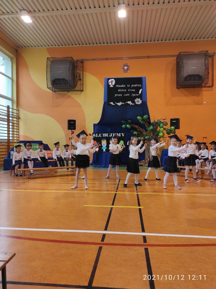 12 października 2021 r. odbyła się w naszej szkole uroczystość pasowania na ucznia. Był to szczególny dzień, który na długo pozostanie w pamięci każdego ucznia klasy pierwszej. W tym dniu dzieci oficjalnie przyjęte zostały do grona uczniów szkoły. Podczas uroczystości pierwszoklasiści pokazali, że potrafią pięknie śpiewać, tańczyć i recytować wiersze. Najważniejszą częścią uroczystości, na którą wszyscy czekali było ślubowanie oraz pasowanie wielkim ołówkiem przez panią Dyrektor. Pierwszaki głośno i z przekonaniem przyrzekały być dobrymi i pilnymi uczniami oraz rzetelnie wypełniać swoje obowiązki. Wszystkim pierwszoklasistom w tak ważnym dla nich dniu życzymy wielu sukcesów na nowej drodze obowiązków szkolnych.