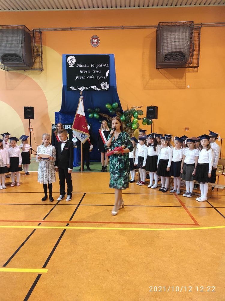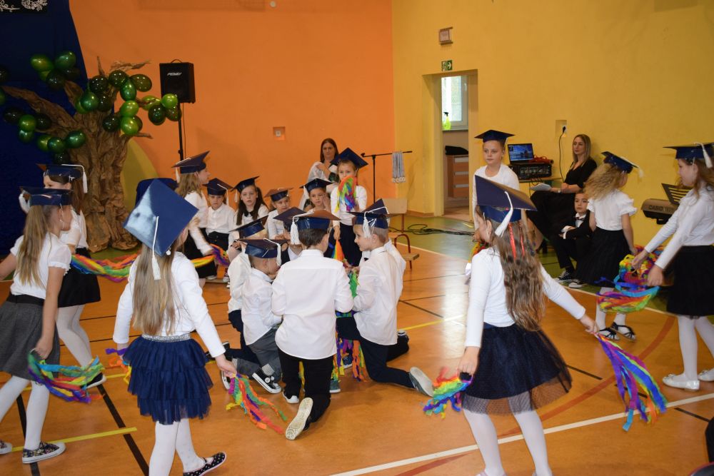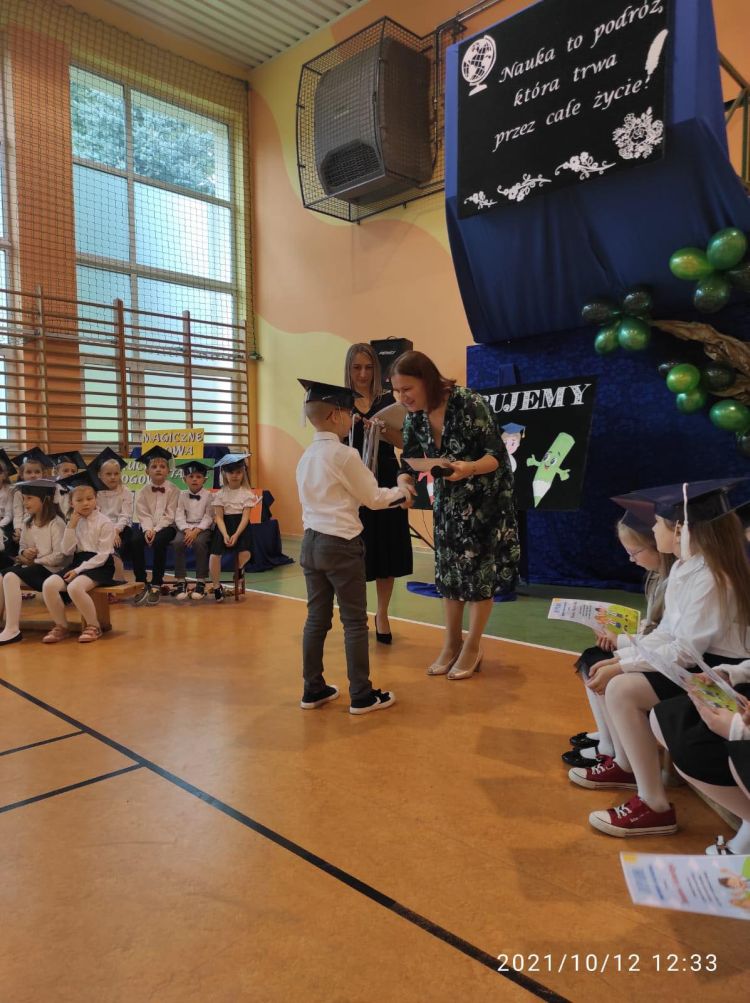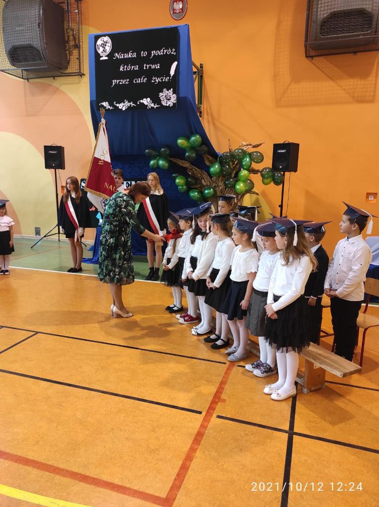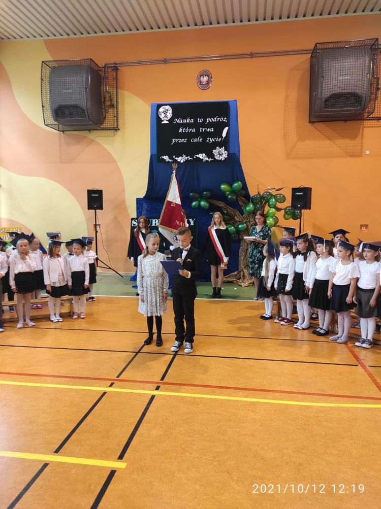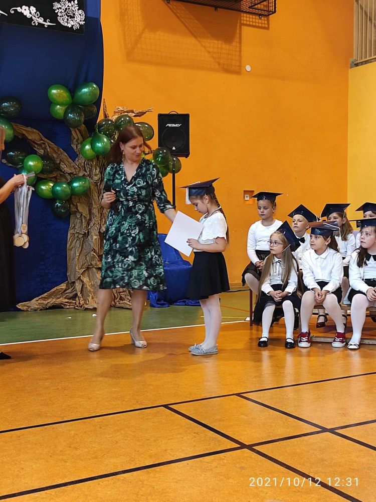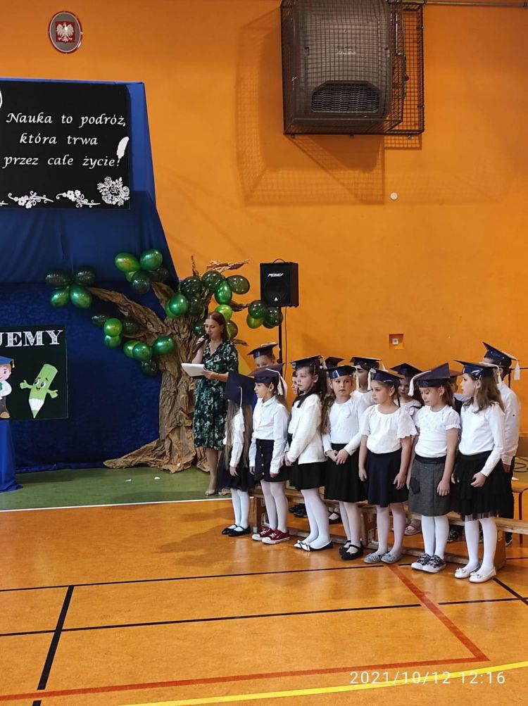 12 października 2021 r. odbyła się w naszej szkole uroczystość pasowania na ucznia. Był to szczególny dzień, który na długo pozostanie w pamięci każdego ucznia klasy pierwszej. W tym dniu dzieci oficjalnie przyjęte zostały do grona uczniów szkoły. Podczas uroczystości pierwszoklasiści pokazali, że potrafią pięknie śpiewać, tańczyć i recytować wiersze. Najważniejszą częścią uroczystości, na którą wszyscy czekali było ślubowanie oraz pasowanie wielkim ołówkiem przez panią Dyrektor. Pierwszaki głośno i z przekonaniem przyrzekały być dobrymi i pilnymi uczniami oraz rzetelnie wypełniać swoje obowiązki. Wszystkim pierwszoklasistom w tak ważnym dla nich dniu życzymy wielu sukcesów na nowej drodze obowiązków szkolnych.