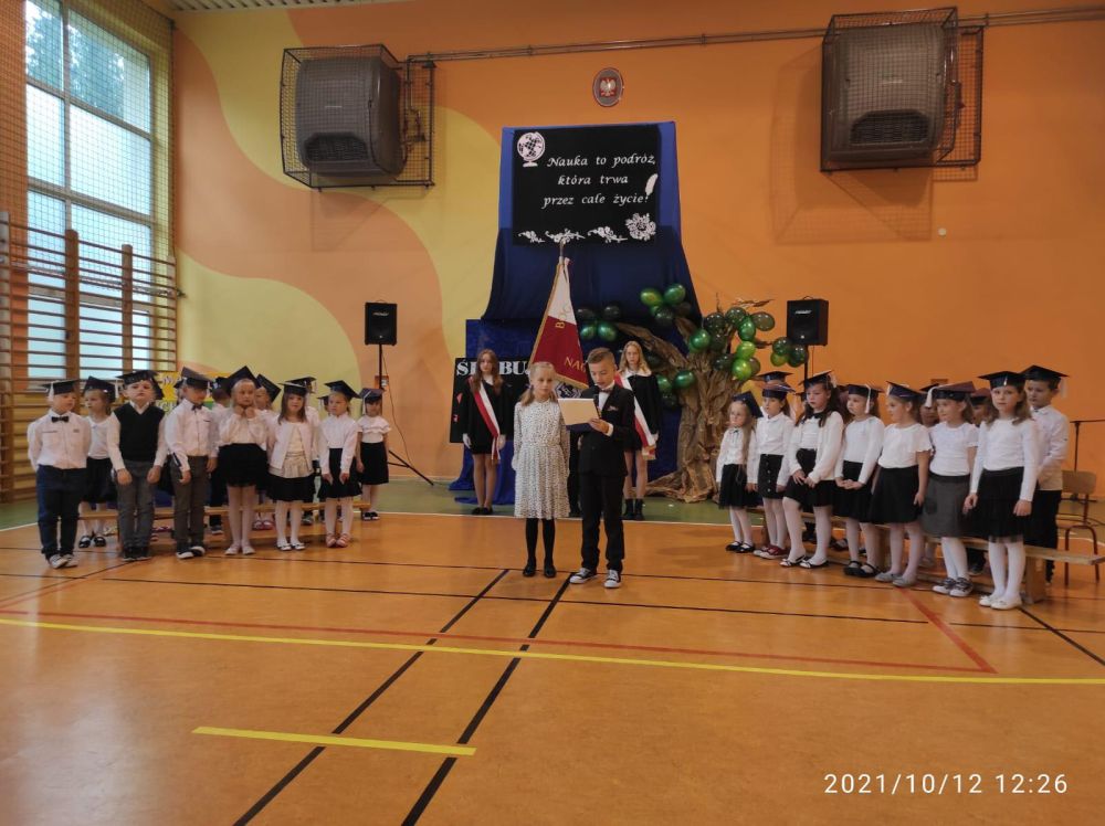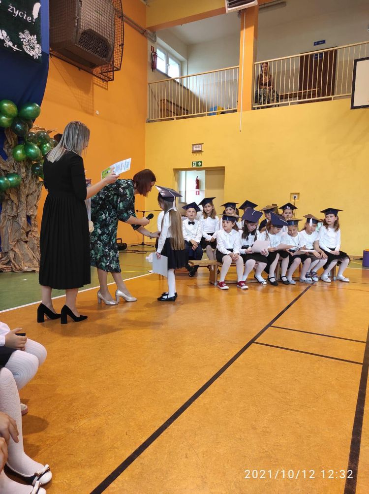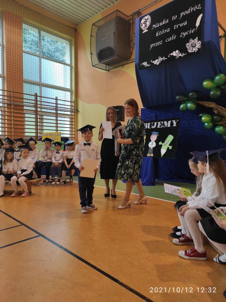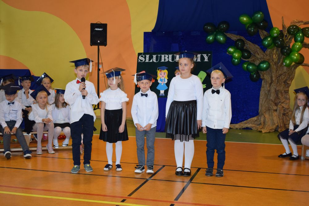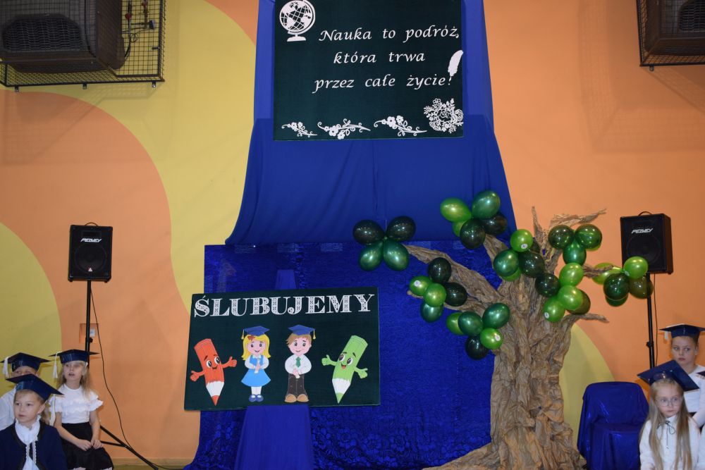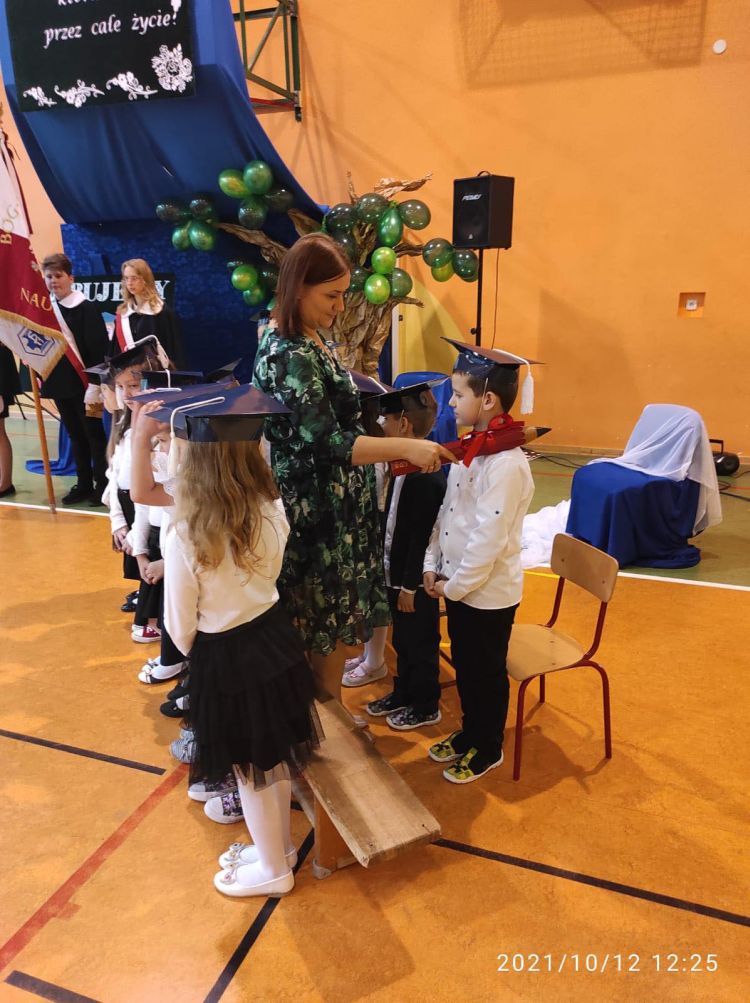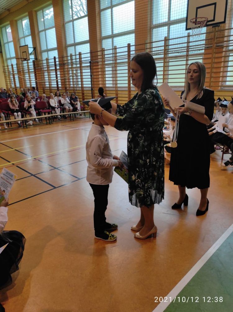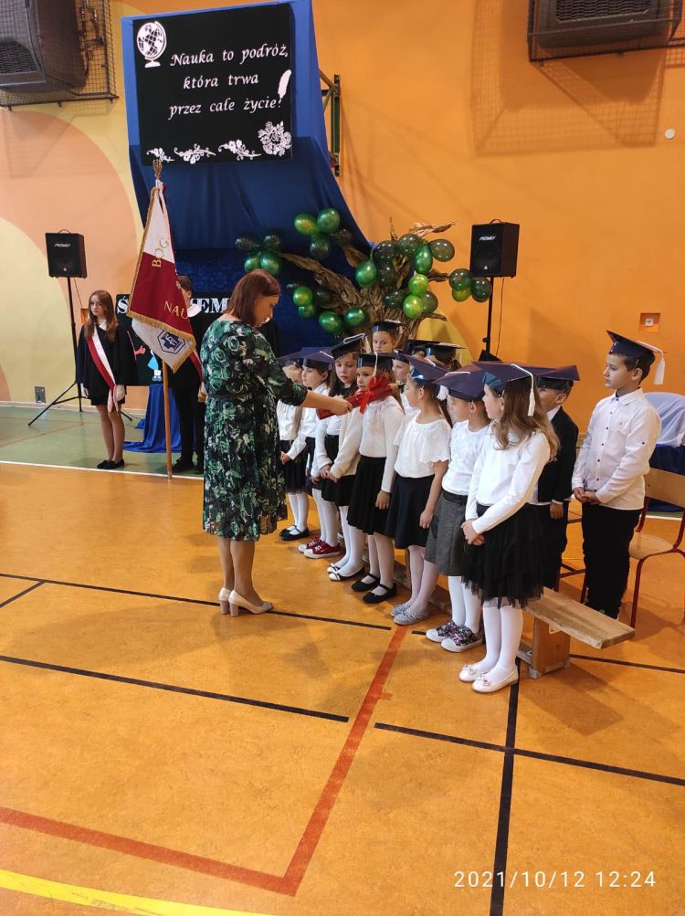 12 października 2021 r. odbyła się w naszej szkole uroczystość pasowania na ucznia. Był to szczególny dzień, który na długo pozostanie w pamięci każdego ucznia klasy pierwszej. W tym dniu dzieci oficjalnie przyjęte zostały do grona uczniów szkoły. Podczas uroczystości pierwszoklasiści pokazali, że potrafią pięknie śpiewać, tańczyć i recytować wiersze. Najważniejszą częścią uroczystości, na którą wszyscy czekali było ślubowanie oraz pasowanie wielkim ołówkiem przez panią Dyrektor. Pierwszaki głośno i z przekonaniem przyrzekały być dobrymi i pilnymi uczniami oraz rzetelnie wypełniać swoje obowiązki. Wszystkim pierwszoklasistom w tak ważnym dla nich dniu życzymy wielu sukcesów na nowej drodze obowiązków szkolnych.
