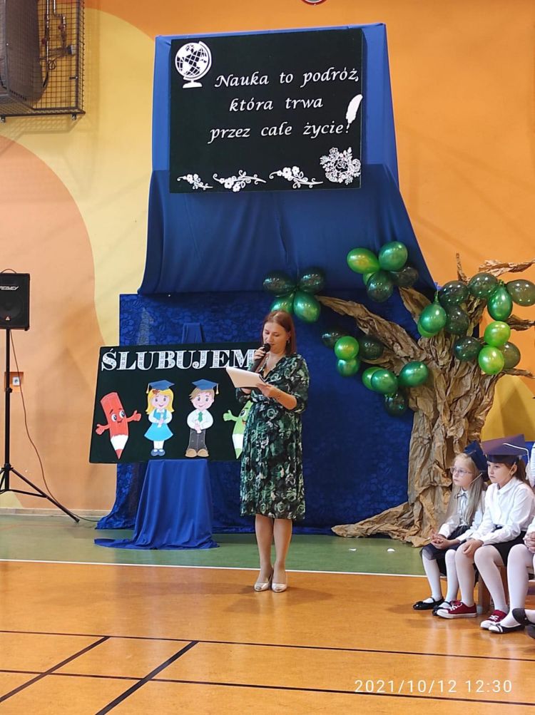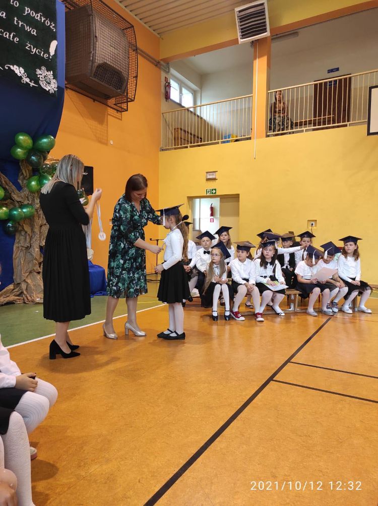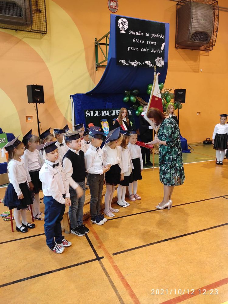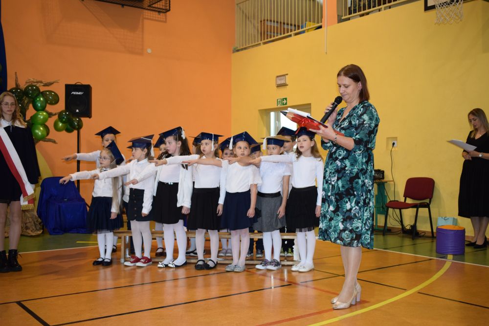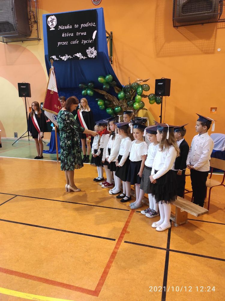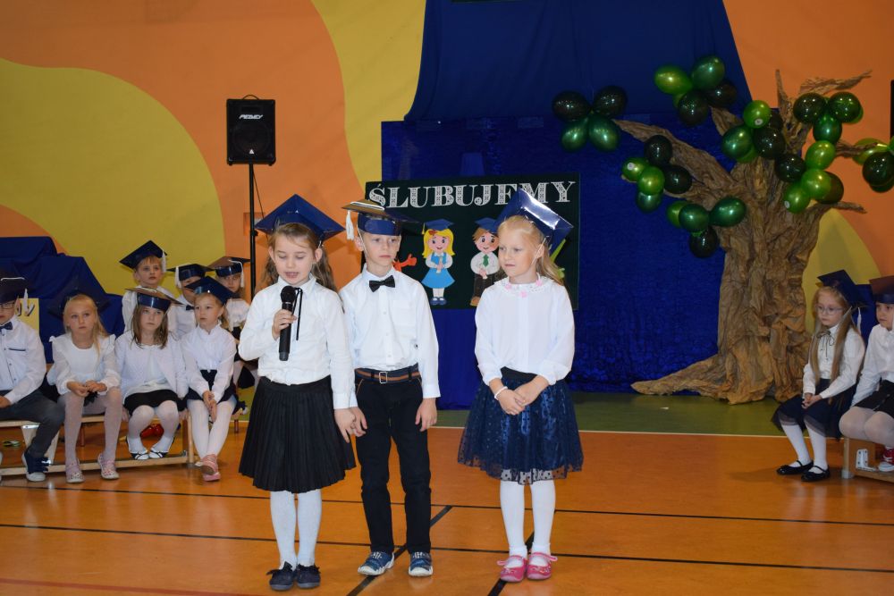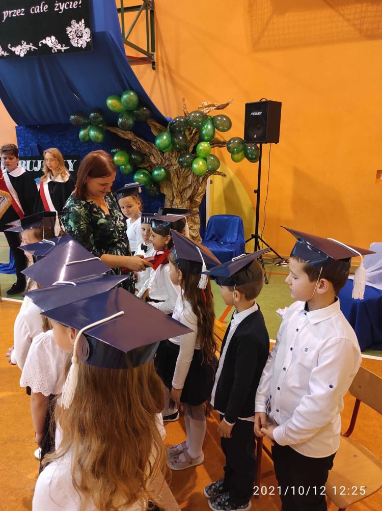 12 października 2021 r. odbyła się w naszej szkole uroczystość pasowania na ucznia. Był to szczególny dzień, który na długo pozostanie w pamięci każdego ucznia klasy pierwszej. W tym dniu dzieci oficjalnie przyjęte zostały do grona uczniów szkoły. Podczas uroczystości pierwszoklasiści pokazali, że potrafią pięknie śpiewać, tańczyć i recytować wiersze. Najważniejszą częścią uroczystości, na którą wszyscy czekali było ślubowanie oraz pasowanie wielkim ołówkiem przez panią Dyrektor. Pierwszaki głośno i z przekonaniem przyrzekały być dobrymi i pilnymi uczniami oraz rzetelnie wypełniać swoje obowiązki. Wszystkim pierwszoklasistom w tak ważnym dla nich dniu życzymy wielu sukcesów na nowej drodze obowiązków szkolnych.