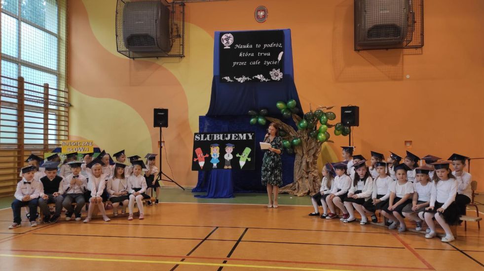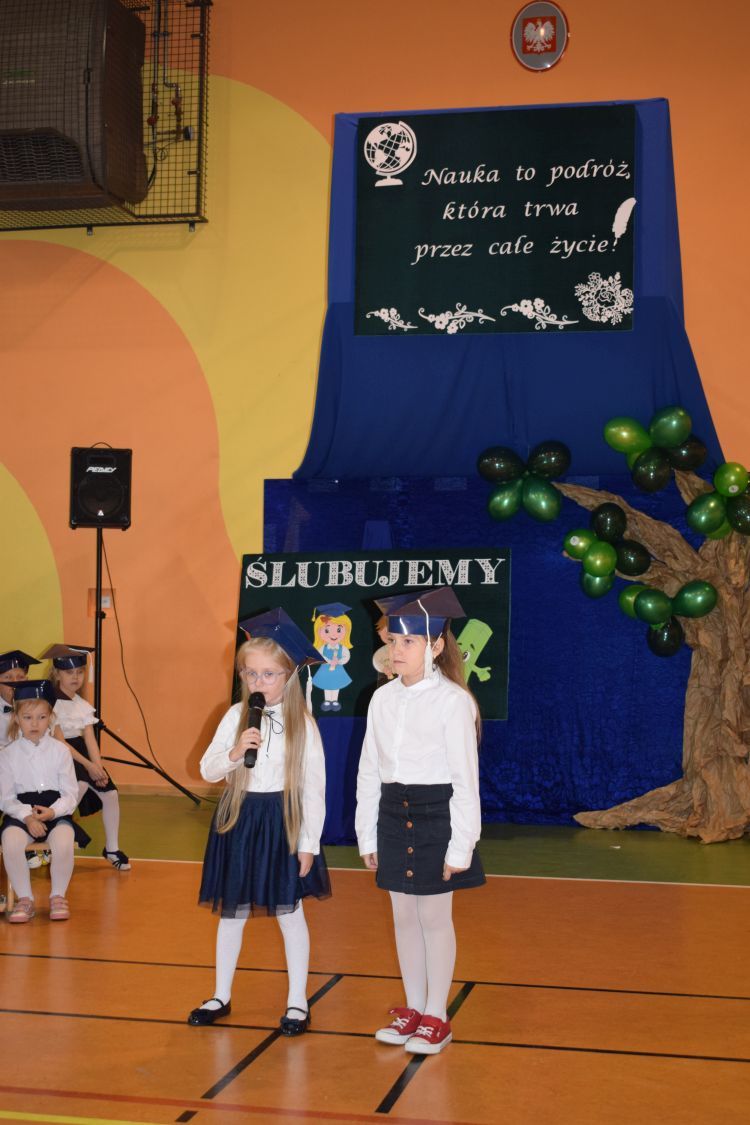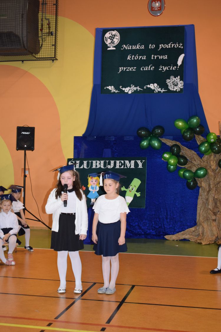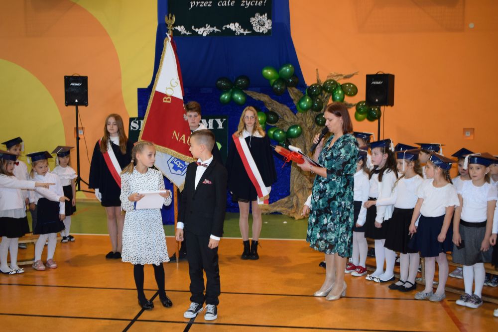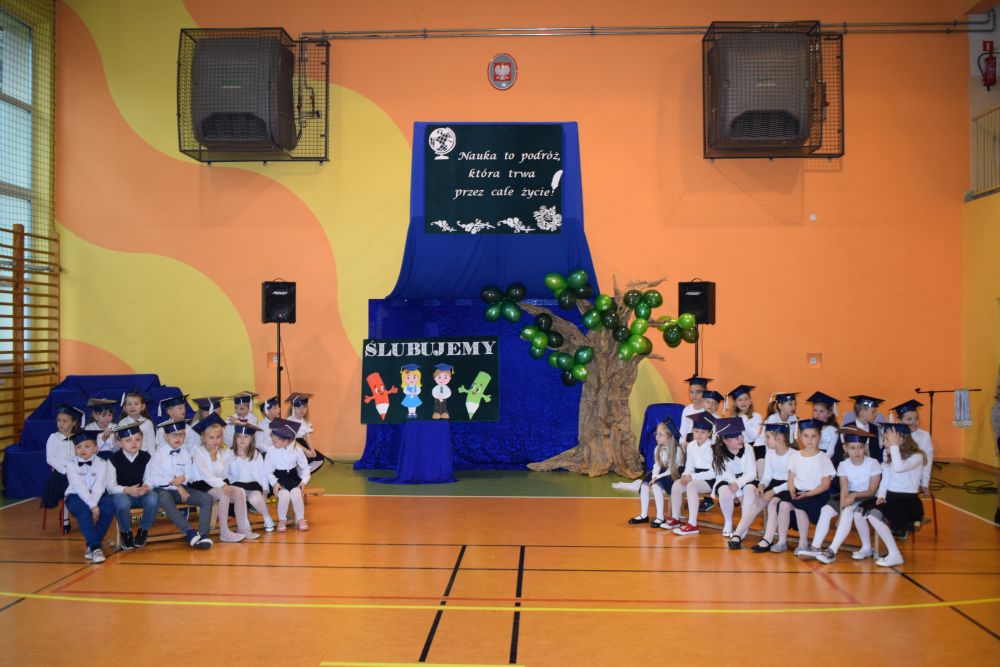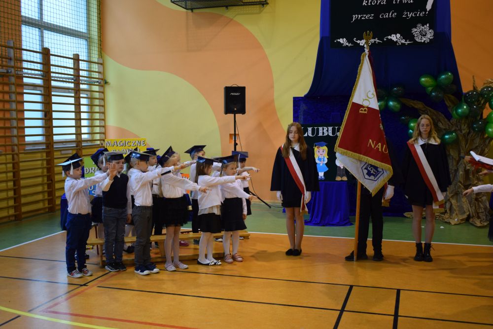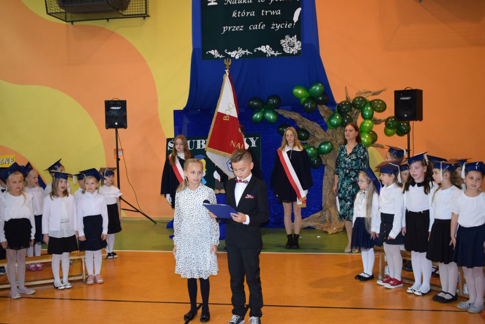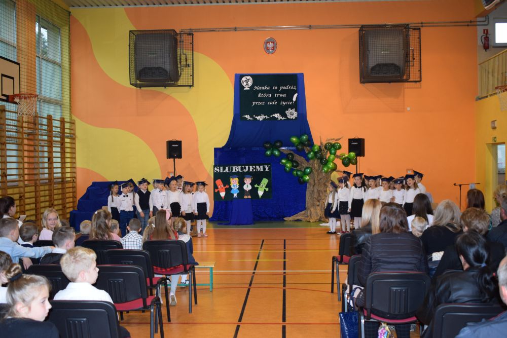 12 października 2021 r. odbyła się w naszej szkole uroczystość pasowania na ucznia. Był to szczególny dzień, który na długo pozostanie w pamięci każdego ucznia klasy pierwszej. W tym dniu dzieci oficjalnie przyjęte zostały do grona uczniów szkoły. Podczas uroczystości pierwszoklasiści pokazali, że potrafią pięknie śpiewać, tańczyć i recytować wiersze. Najważniejszą częścią uroczystości, na którą wszyscy czekali było ślubowanie oraz pasowanie wielkim ołówkiem przez panią Dyrektor. Pierwszaki głośno i z przekonaniem przyrzekały być dobrymi i pilnymi uczniami oraz rzetelnie wypełniać swoje obowiązki. Wszystkim pierwszoklasistom w tak ważnym dla nich dniu życzymy wielu sukcesów na nowej drodze obowiązków szkolnych.