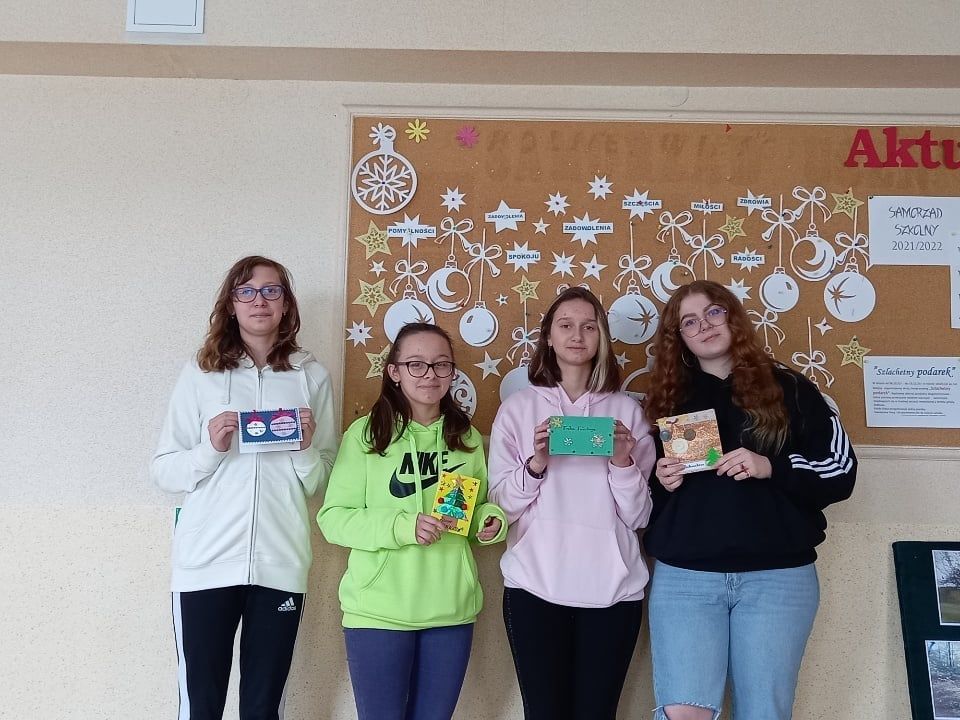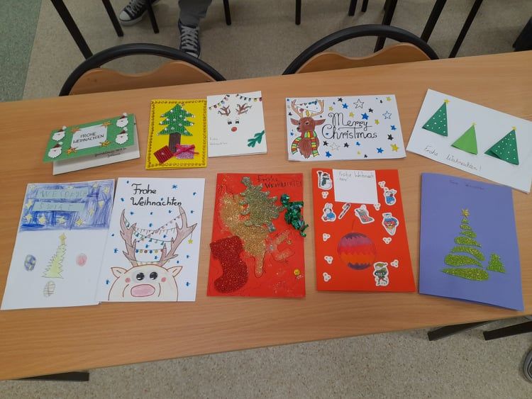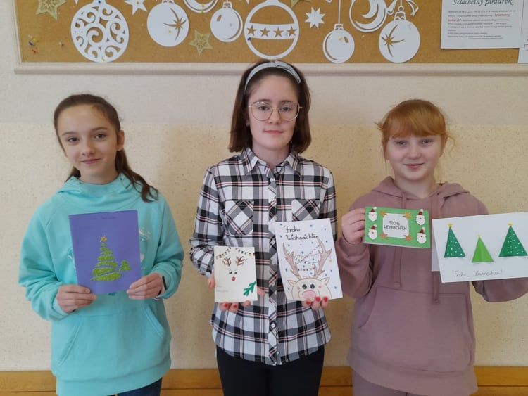 W ramach projektu uczniowie z klasy 6, 7b i 8a przygotowali kartki z tradycyjnymi życzeniami w języku niemieckim. Czego życzyli najczęściej swoim kolegom i koleżankom?