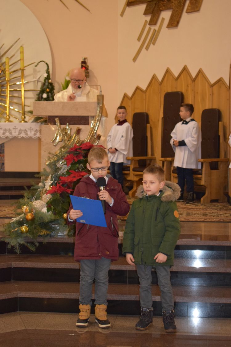 Święto Babci i Dziadka to uroczystość, która stała się tradycją naszej szkoły, a organizowana jest przez uczniów klas 0 – III wraz z wychowawczyniami. W tym roku tradycyjną akademię zastąpiliśmy mszą świętą, która odbyła się 21 stycznia o godzinie 11:00 w Sanktuarium Dzieciątka Jezus w Jodłowej, za którą serdecznie dziękujemy księdzu proboszczowi. Nasi uczniowie aktywnie w niej uczestniczyli. Były też liczne kolędy, śpiewane wspólnie z rodzicami i z seniorami. Na koniec uczniowie klas trzecich odmówili modlitwę za seniorów, a wszyscy odśpiewali „Życzymy, życzymy...”