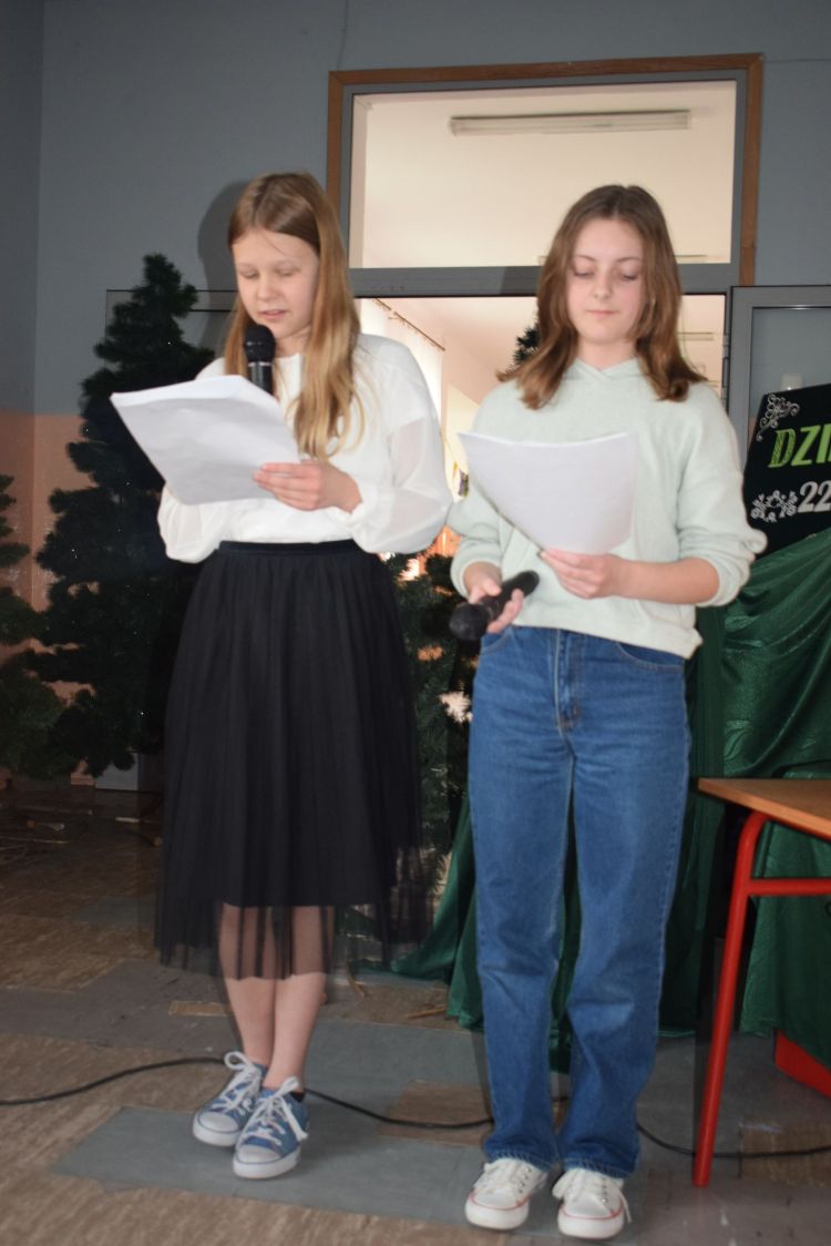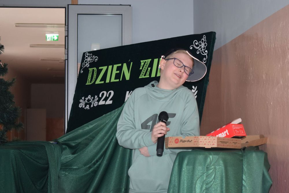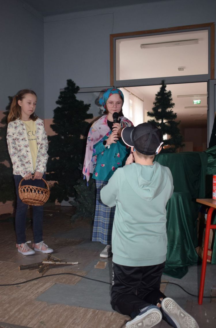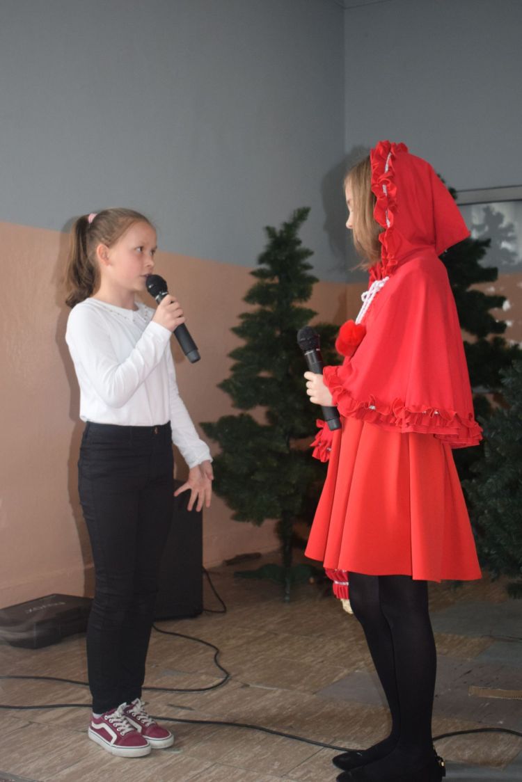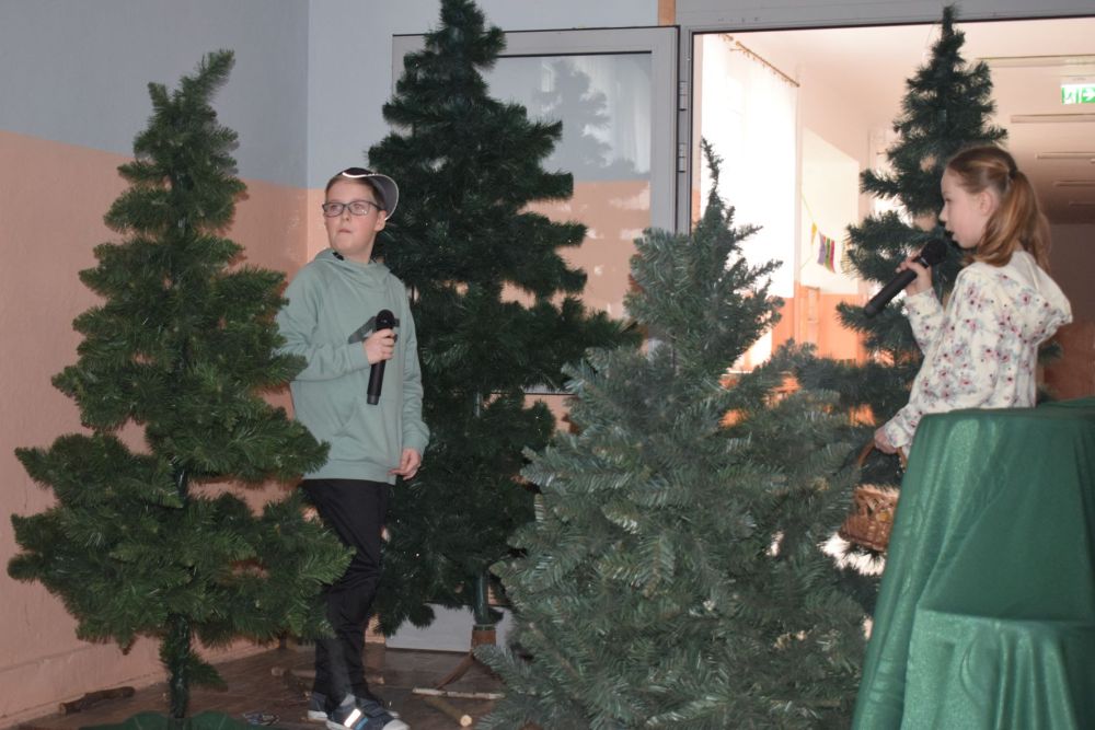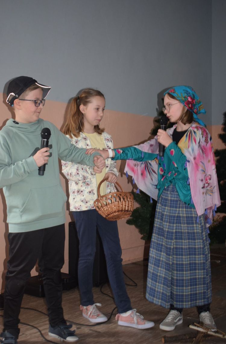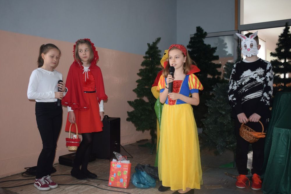 Z tej okazji uczniowie klasy IV przygotowali krótkie inscenizacje „W bajkowym świecie ekobohaterów”. Kolejno na scenie pojawiali się: Księżyc, Słońce, Ziemia, Kubuś Puchatek, Królik, Królewna Śnieżka oraz Jaś i Małgosia, Baba Flora.