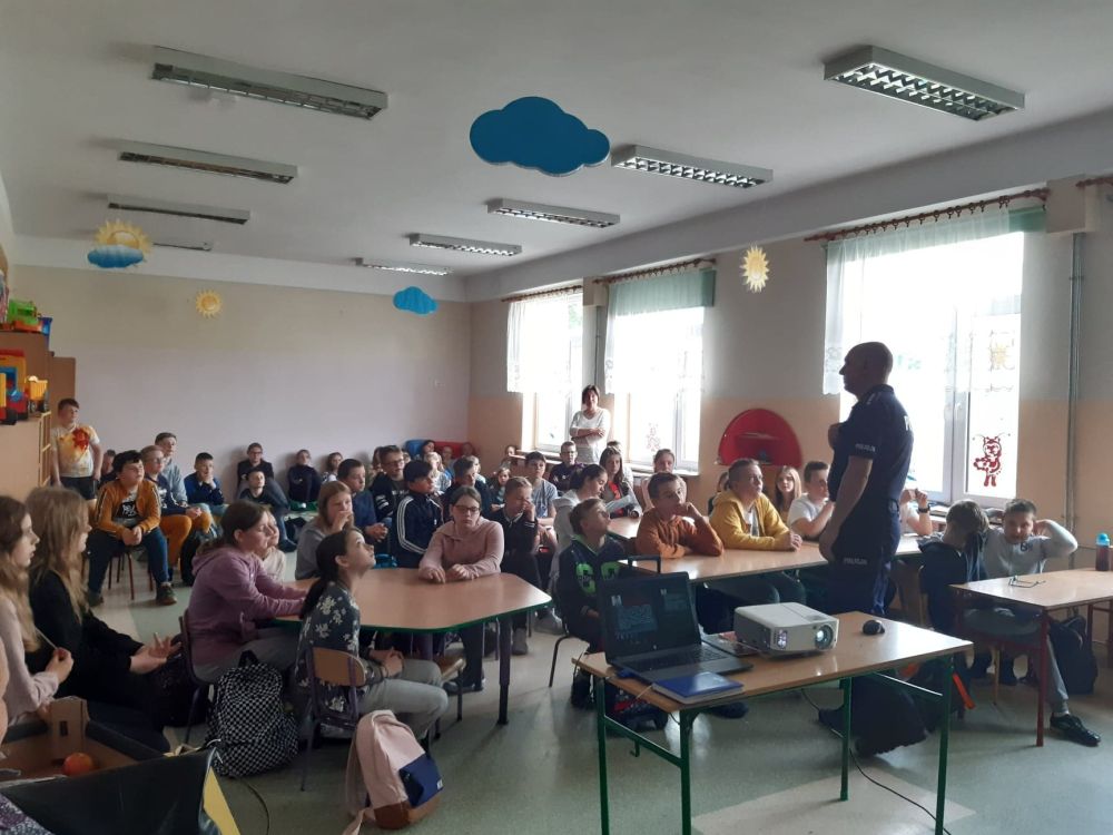 policjantW mininych dniach odbyło się spotkanie z funkcjonariuszem Policji. W spotkaniach uczestniczyły klasy IV - VIII. Tematem spotkania była "Odpowiedzialność prawna nieletnich i czyny zabronione". Uczniowie klasa IV jeszcze dodatkowo wysłuchali krótkiej prelekcji związanej z "Bezpieczeństwem w ruchu drogowym".