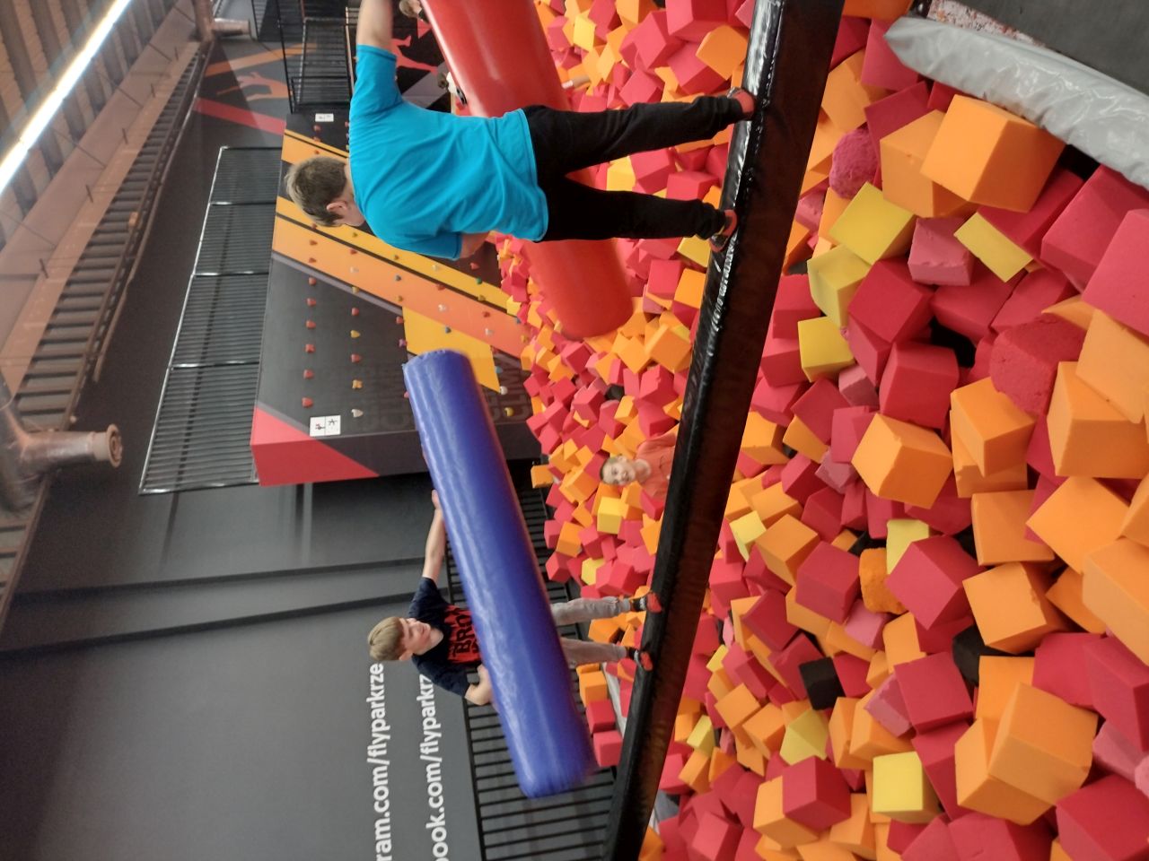 Flypark Rzeszów to miejsce, gdzie można aktywnie i ciekawie spędzić czas. Sprawdzali to uczniowie klas szóstych naszej szkoły, którzy odwiedzili Rzeszowski Flypark 24 października 2022r. Wśród wielu atrakcji, które oferuje to miejsce, największym zainteresowaniem cieszyło się rodeo, gdzie każdy mógł spróbować „jazdy na byku”, ale nie zabrakło również amatorów zjeżdżalni, tyrolki, czy licznych trampolin, na których można wykonywać różne akrobacje. A przegranie pojedynku na rampie nikomu nie psuło humoru, bo kończyło się lądowaniem w basenie wypełnionym gąbkami.