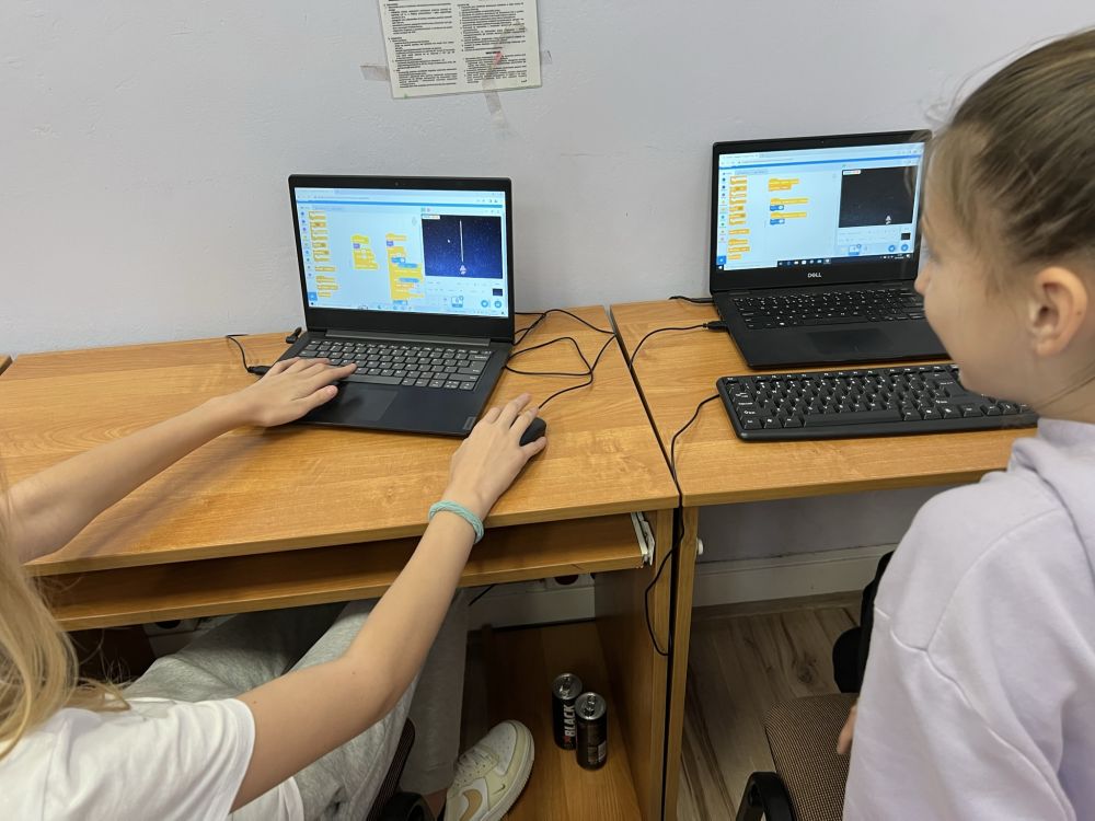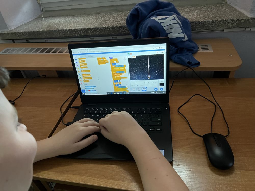 Uczniowie kółka informatycznego oraz uczniowie klasy 8a stworzyli w środowisku Scratch grę wzorowaną na „Space Invaders”. Pracę nad projektem rozpoczęli od przygotowania grafik (duszków i tła); następnie tworzyli skrypty dla Statku, Obcego, Pocisku i sceny. Zajęcia zakończyły się testowaniem stworzonej gry.