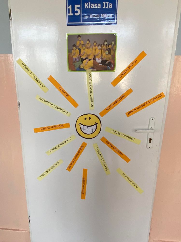 Zorganizowano także dwa konkursy: literacki – wiersz lub rymowanka na temat życzliwości, kultury, tolerancji połączony z tematyką zdrowia i zdrowego stylu życia oraz międzyklasowy – na najpiękniej przystrojoną salę lekcyjną ,najliczniej ubranych uczniów na kolor żółty.