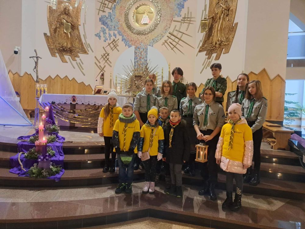 Betlejemskie Światło Pokoju Opublikowano: 19 grudzień 2022 18 grudnia zuchy i harcerze przynieśli Betlejemskie Światło Pokoju do kościoła parafialnego w Jodłowej. Tym samym światełko rozpoczyna betlejemską sztafetę po naszej miejscowości. Zabierzmy je do swojego domu na wigilijny stół.