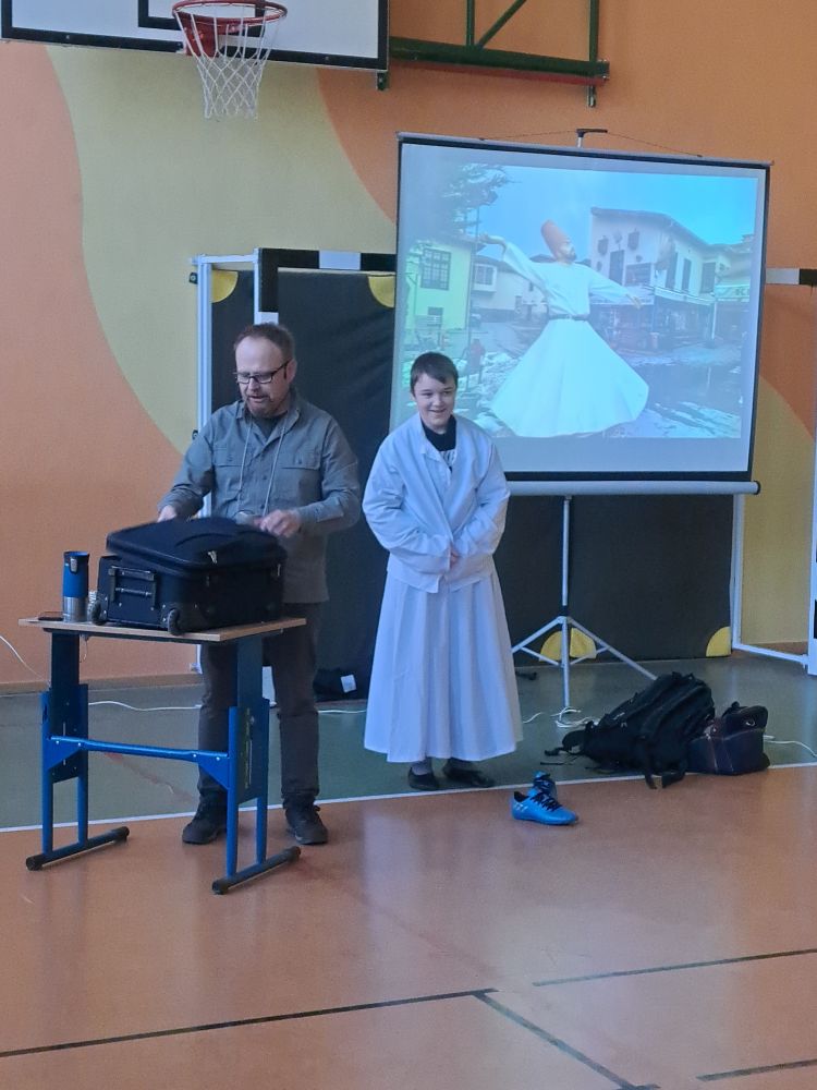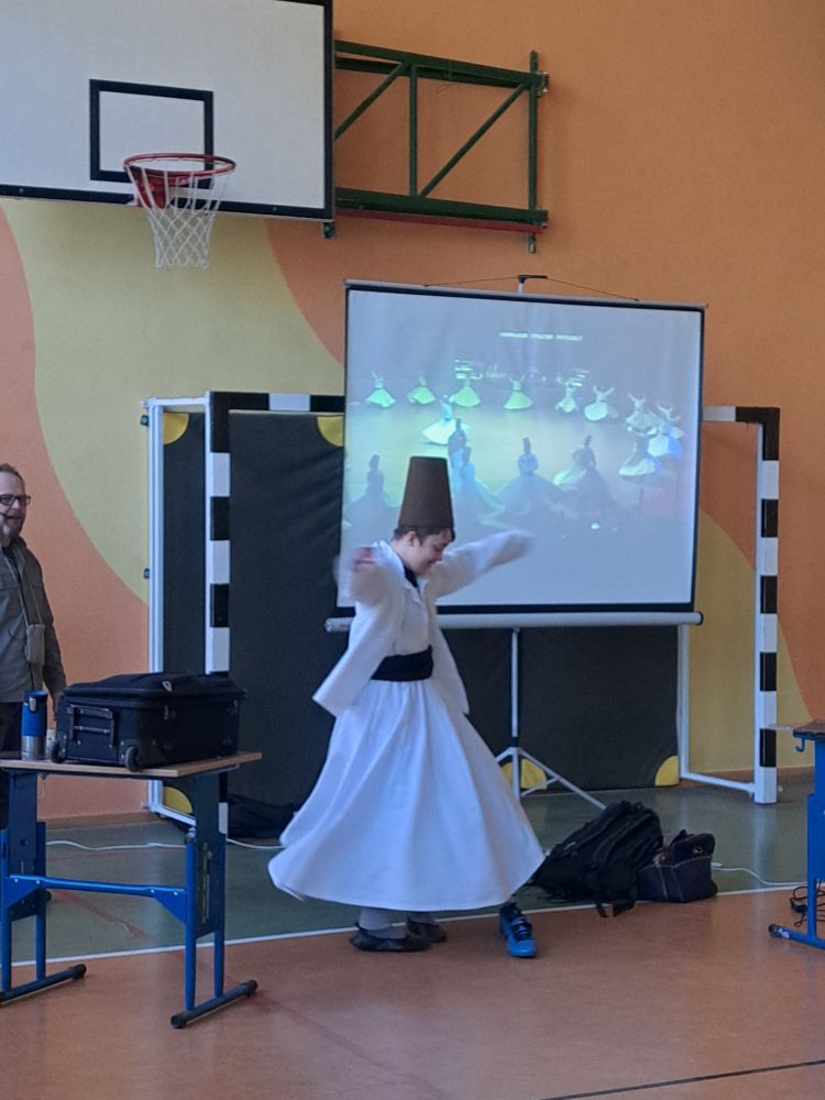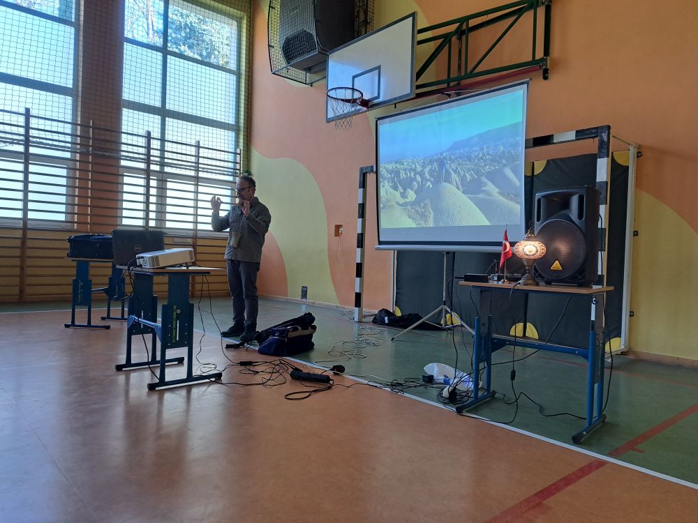 29 marca 2023 r. naszą szkołę odwiedził podróżnik, który opowiadał nam o Turcji - pięknym państwie leżącym na dwóch kontynentach. Widzieliśmy zdjęcia zrobione w różnych ciekawych zakątkach kraju oraz wysłuchaliśmy ciekawych opowieści i przygód, które spotkały naszego gościa. Opowiadał on nam m.in o Kapadocji, zagłębiu uprawy pistacji, skalnych świątyniach, podziemnym mieście czy o stolicy - Stambule. Widzieliśmy także tradycyjny strój oraz taniec derwiszy - jeden z najbardziej charakterystycznych elementów kultury tureckiej.