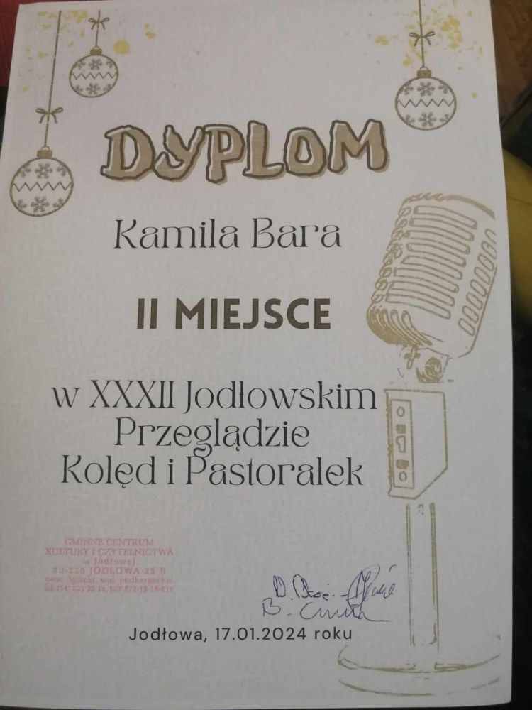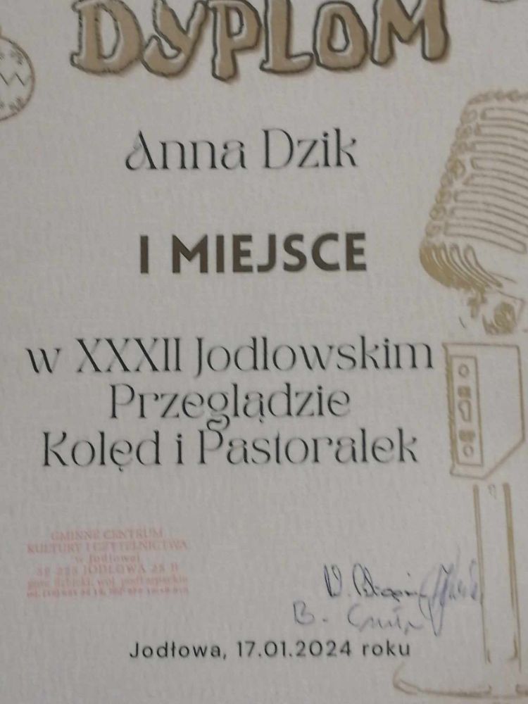 17 stycznia 2024 roku odbył się XXXII Jodłowski Przegląd Kolęd i Pastorałek. W konkursie wzięło udział ponad 40 uczestników ze szkół oraz Niepublicznego Przedszkola gminy Jodłowa. Naszą szkołę reprezentowało 9 wykonawców.