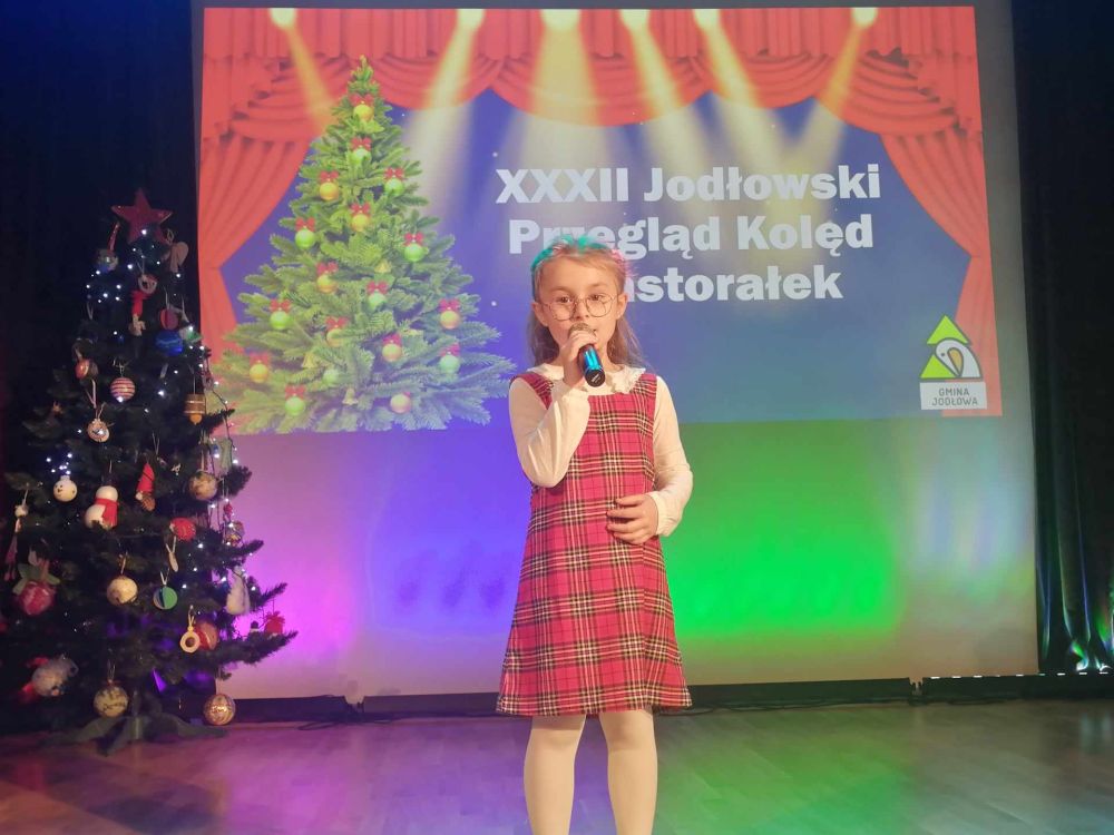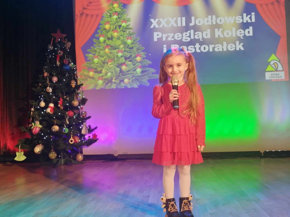Kategoria I (kl. 0) - II miejsce - Kamila Bara. Kamila zaśpiewała współczesną piosenkę bożonarodzeniową „Podniebna rozmowa”.