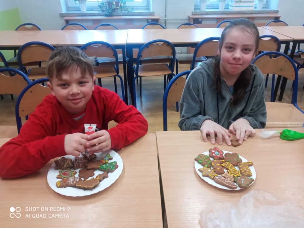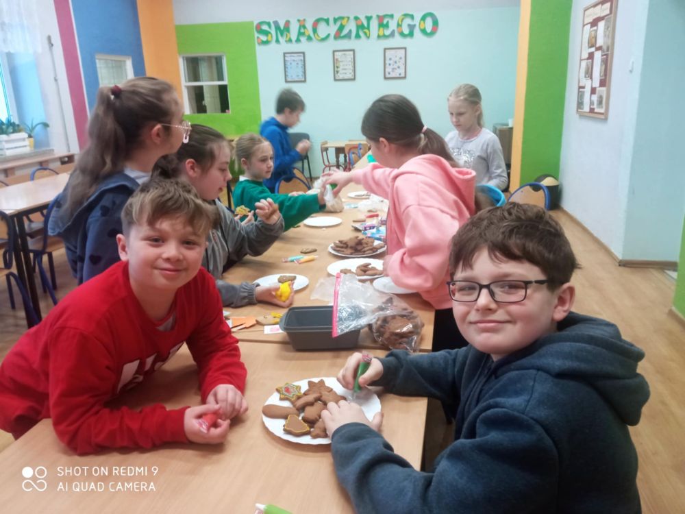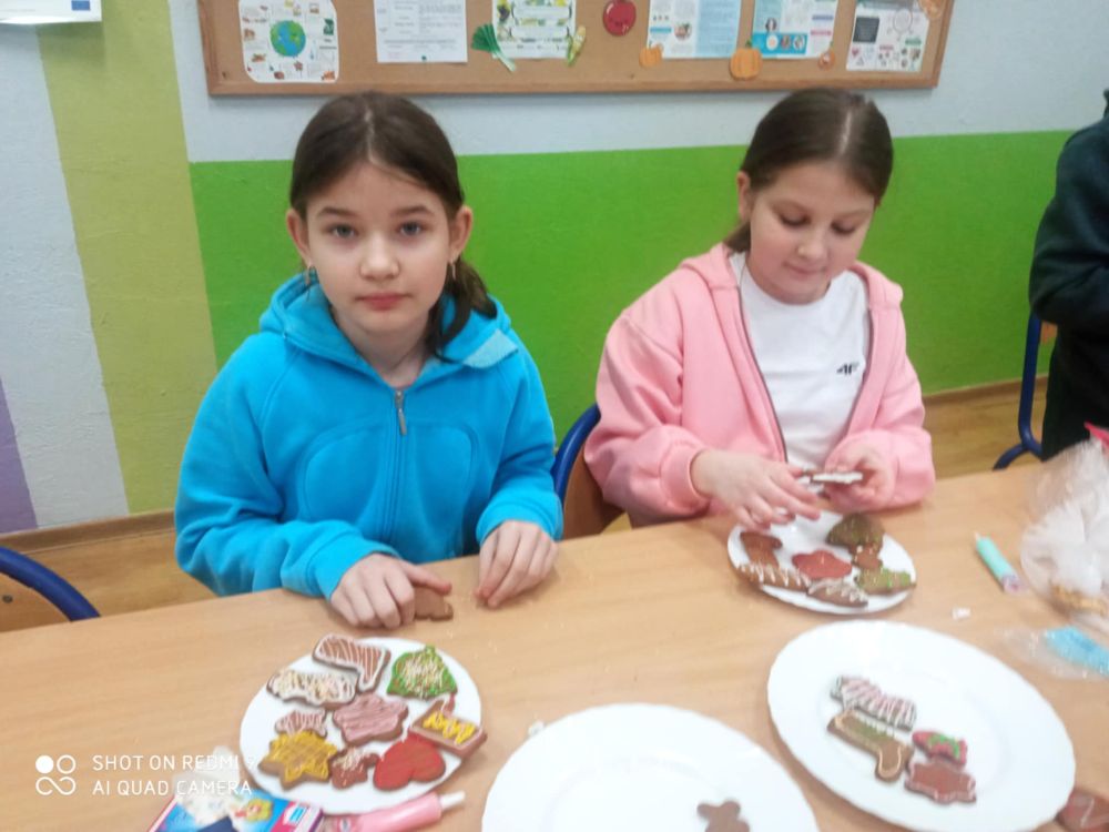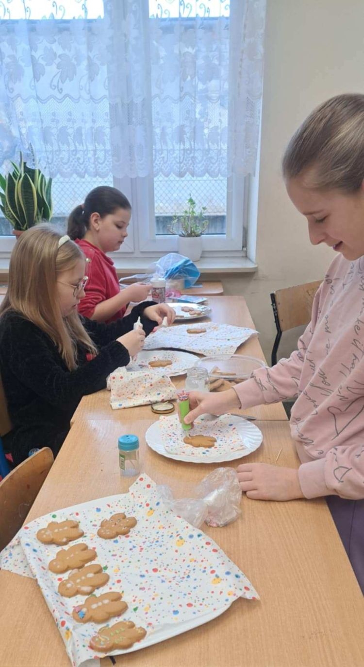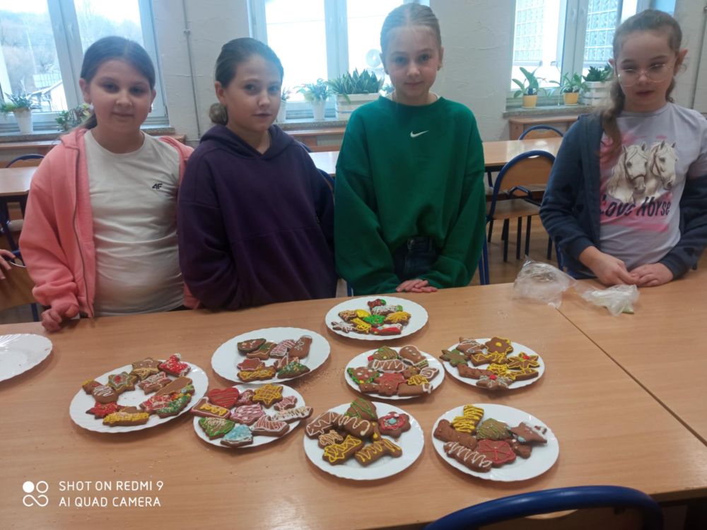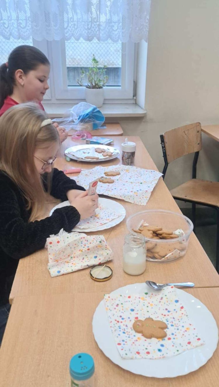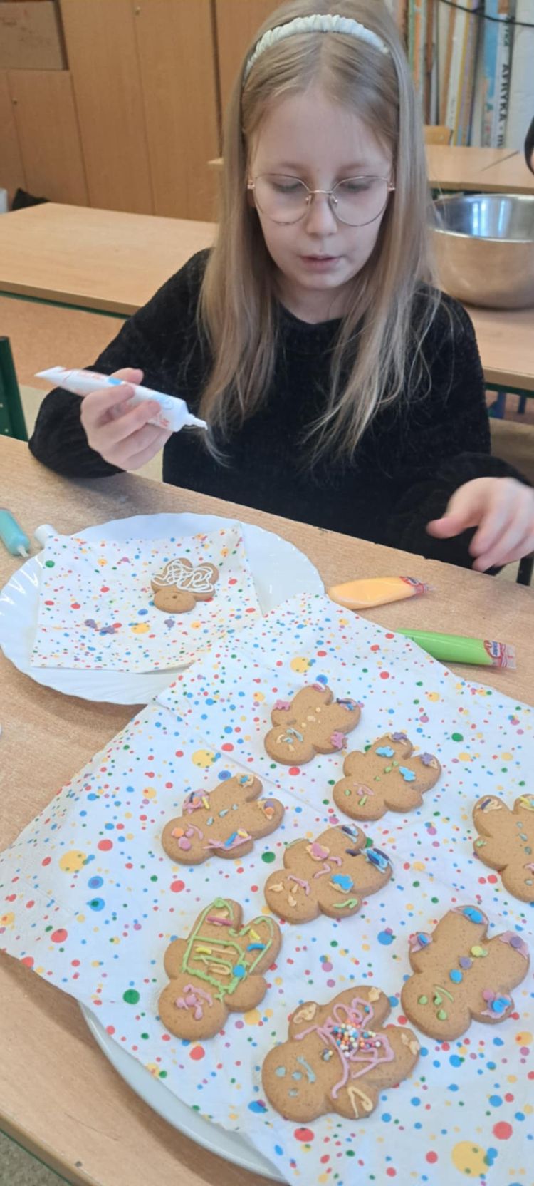 11Uczniom klas IV udzielił się duch przygotowań do Świąt Bożego Narodzenia. Wspólnie udekorowali świąteczne pierniczki. Miło spędzając czas ma rozmowach dotyczących świątecznych tradycji i zwyczajów, Przygotowaliśmy ciasteczka na Wigilię klasowe.