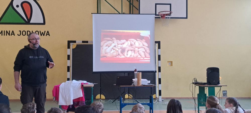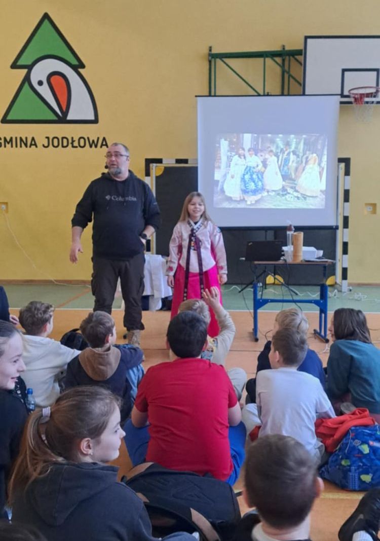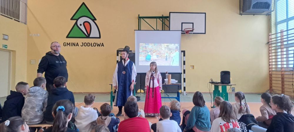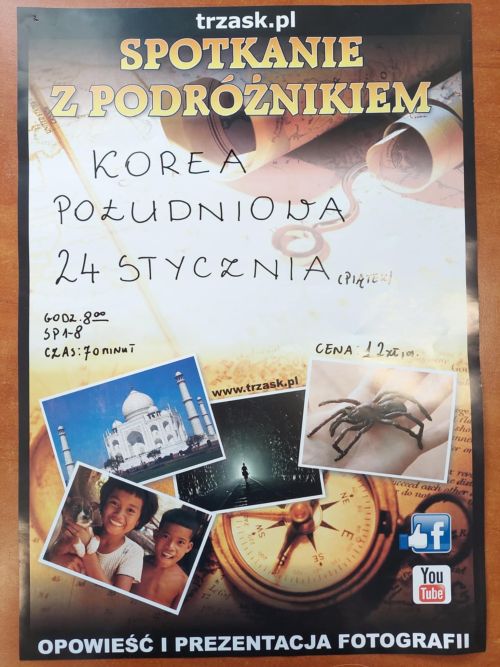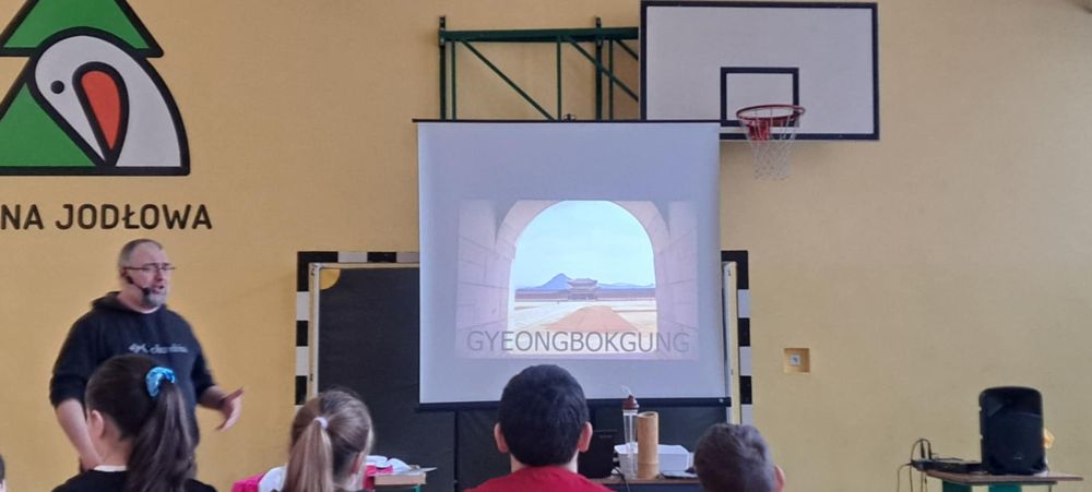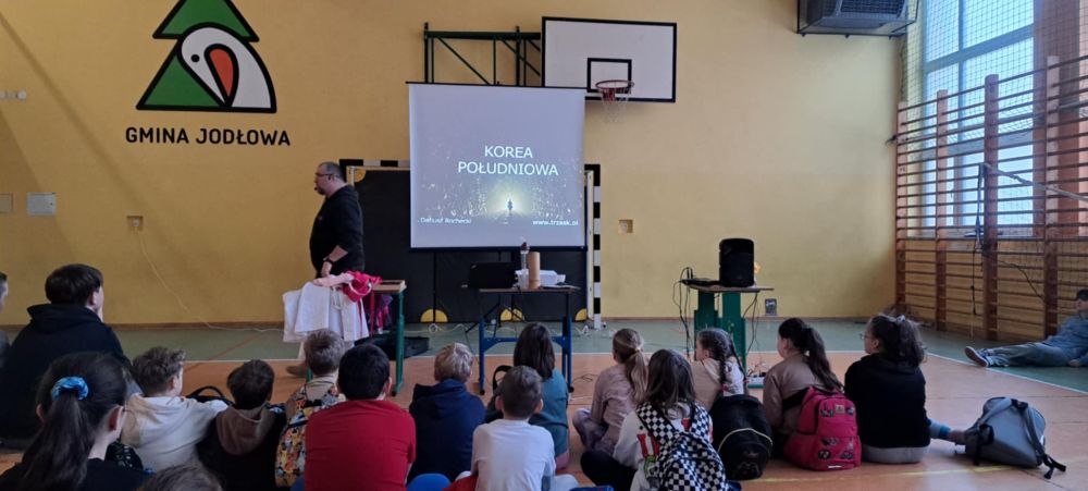 1Dziś w naszej szkole odbyło się spotkanie z podróżnikiem, który w ciekawy sposób przedstawił zebranym na sali uczniom jeden z krajów azjatyckich - Koree Południową. Uczniowie zapoznali się z historią, przyrodą, kulturą związaną z tym krajem. Jak zwykle najwięcej emocji wzbudziły ciekawostki kulinarne oraz panujące w tym kraju zwyczaje.