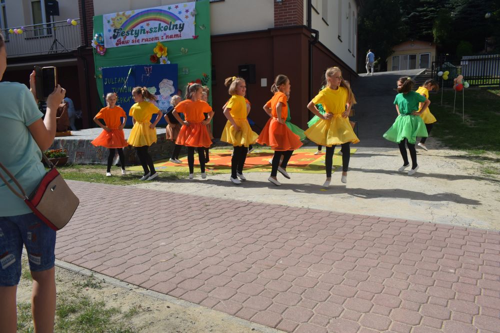 Zabawa rozpoczęła się o godzinie 1445. Pani dyrektor Aneta Janaś powitała wszystkich gości, wójta Gminy Jodłowa Pana Roberta Muchę, przewodniczącego Rady Gminy Jodłowa Romana Warzechę oraz dyrektorów szkół z terenu Gminy Jodłowa. Na początku zaprezentowały się przedszkolaki w „Tańcu Kwiatów”. Następnie wszyscy wysłuchali piosenek w wykonaniu laureatów gminnego konkursu „Jodłowa śpiewa”. Uczniowie klasy II „Mali Jodłowianie” w pięknych rzeszowskich strojach zatańczyli dla wszystkich tańce ludowe. W naszej szkole gościliśmy również rodziców ze Szkoły Podstawowej w Dęborzynie, którzy wykonali sceniczną adaptację „Rzepki” Juliana Tuwima. Za piękny i kabaretowy występ otrzymali gromkie brawa od publiczności. Wielką atrakcją tego popołudnia był mistrzowski zespół marżoretkowy  „JUPITER” z Pilzna, który wykonał 5 fascynujących układów. Dzieci i rodzice byli pod wielkim wrażeniem talentu i sprytu młodych tancerek. Wielkim zainteresowaniem cieszył się również mecz "rodzice - dzieci". Zespół tatusiów wygrał ze swoimi pociechami 5:2 po serii karnych strzałów. Był to czas wielkich zmagań sportowych i emocji. Podczas pikniku nie zabrakło również atrakcji dla najmłodszych: dmuchawce, zjeżdżalnie, przejażdżki policyjnymi motocyklami, jazda wozami strażackimi, malowanie twarzy oraz zabawy z animatorem. Rada Rodziców przygotowała również bogate menu: ciasto, gofry, frytki, napoje, lody, popcorn, kiełbaski z grilla. Na terenie pikniku cały czas otwarta była „Loteria Fantowa” z której dochód przeznaczony został  na leczenie naszej uczennicy Gabrysi.