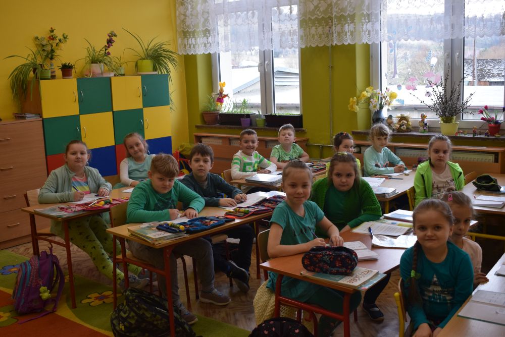 21 marca, pierwszego Dnia Wiosny odbył się ZIELONY DZIEŃ w naszej szkole. Uczniowie z tej okazji ubrali się na zielono. W całej szkole zrobiło się bardzo zielono i wiosennie. Klasy, w których były wzorowe frekwencje obecności i zielone stroje otrzymały dodatnie punkty z zachowania. Ten optymistyczny kolor wywołał wśród dzieci dużo pozytywnych emocji. Pierwszy dzień wiosny kojarzy się także z Marzanną, która symbolizuje odchodzącą zimę. Aby tradycji stało się zadość młodsze klasy przygotowały Marzanny, którą zgodnie z tradycją wrzuciły do rzeki, by spokojnie odpłynęła do morza, a wraz z nią zima.