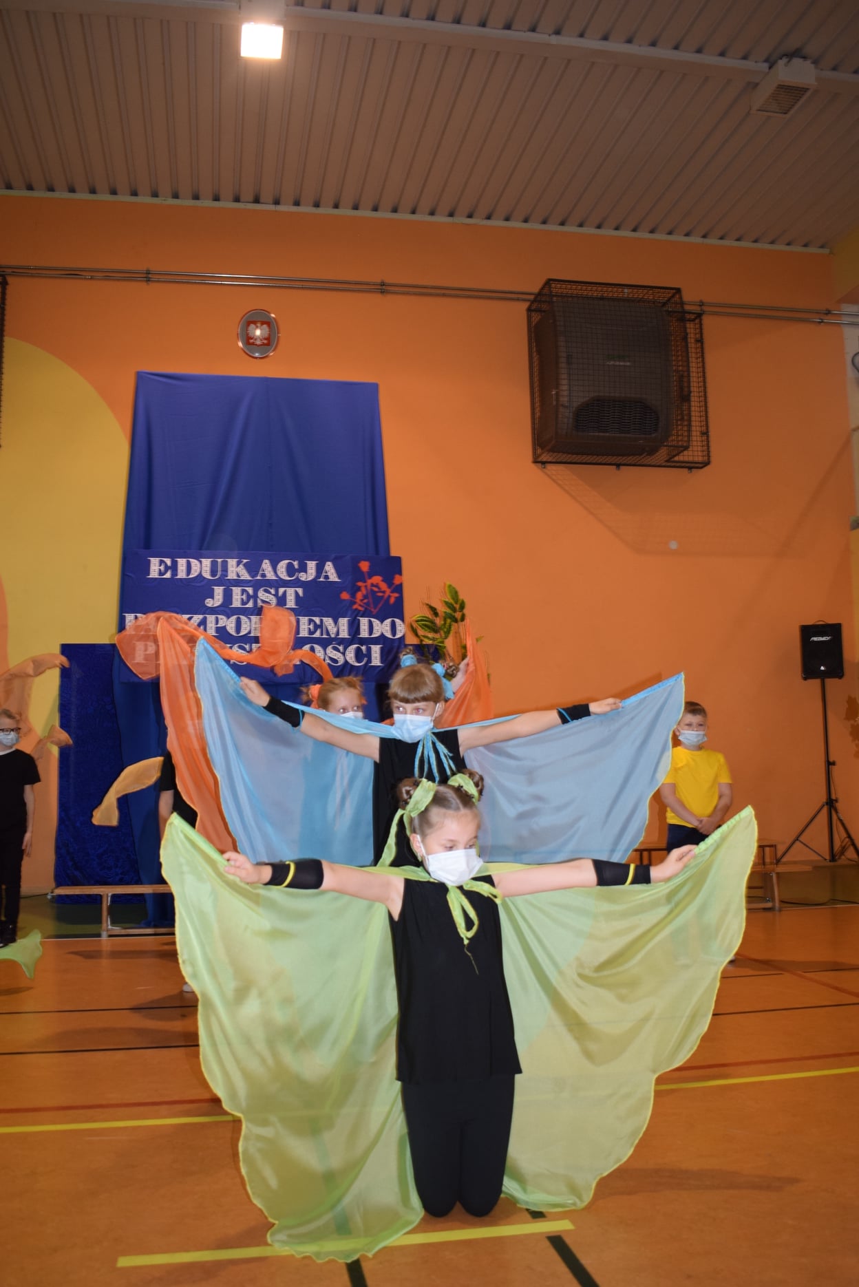 Część artystyczną przygotowali uczniowie klas IVa i VIb, chór szkolny i grupa taneczna z młodszych klas.