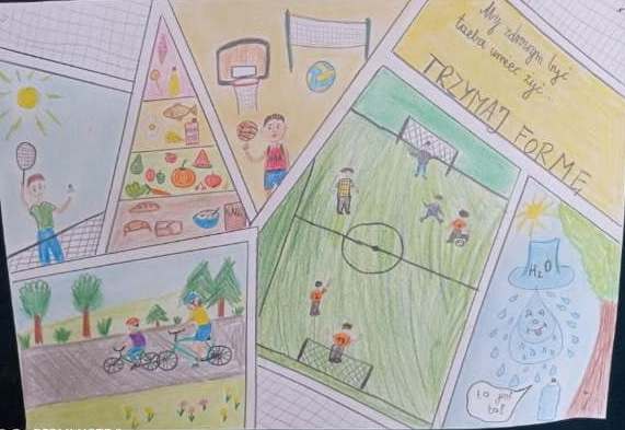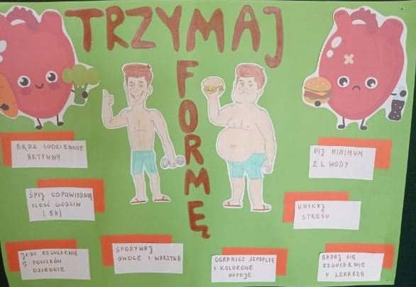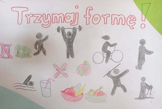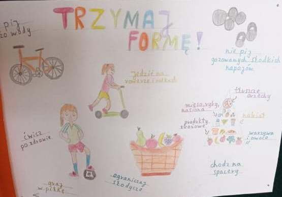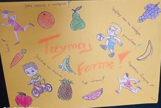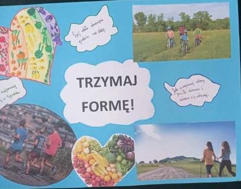 Trzymaj Formę!” to Ogólnopolski Program Edukacyjny współorganizowany przez Główny Inspektorat Sanitarny. Celem programu jest edukacja w zakresie trwałego kształtowania prozdrowotnych nawyków wśród młodzieży szkolnej, poprzez promocję zasad aktywnego stylu życia i zbilansowanej diety. Pomaga rozwijać zainteresowania uczniów, kształtuje ich prozdrowotne nawyki i poszerza ich wiedzę o zdrowym stylu życia. Na lekcjach przyrody zrealizowano wiele zagadnień związanych ze zdrowym stylem życia, które zostały przez uczniów klasy IV przedstawione na plakatach – projektach i umieszczone na gazetkach szkolnych. Zapraszamy do ich obejrzenia.