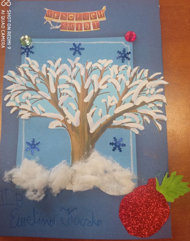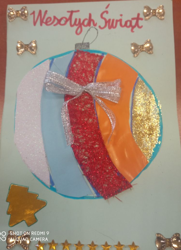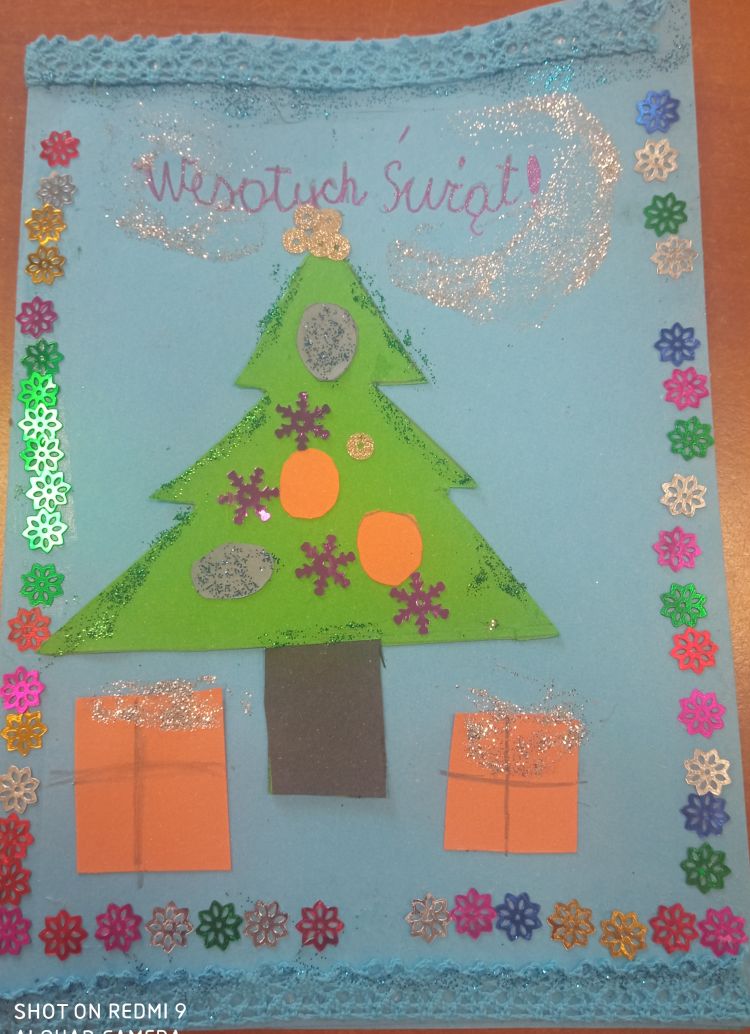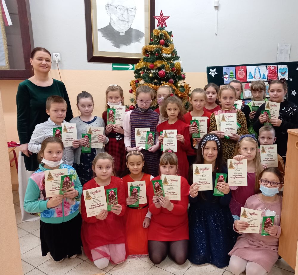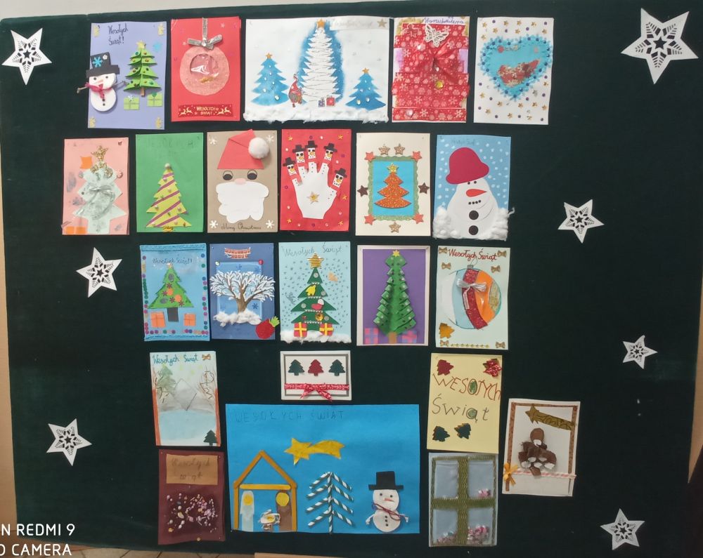 10 grudnia odbył się szkolny konkurs na kartkę świateczną pod hasłem "Magia Świąt Bożego Narodzenia". Konkurs skierowany był dla uczniów kl. I-VI. Wzięło w nim udział 23 uczniów naszej szkoły. Celem konkursu było: rozwijanie wyobraźni, aktywności twórczej, wrażliwości estetycznej uczniów oraz stworzenie uczniom możliwości prezentacji własnych dokonań twórczych.