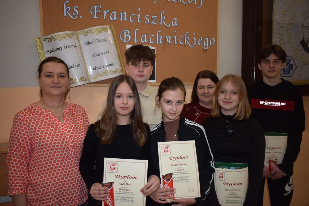 Z okazji 95 rocznicy ustanowienia „Mazurka Dąbrowskiego” hymnem państwowym został przeprowadzony w naszej szkole konkurs „95 LAT HYMNU PAŃSTWOWEGO”. Celem konkursu było rozwijanie zainteresowań uczniów historią Polski i pogłębienie wiedzy dotyczącej naszego hymnu, wybranych pieśni patriotycznych oraz postaci Józefa Wybickiego i Jana Henryka Dąbrowskiego. W konkursie wzięło udział 57 uczniów klas VII i VIII. Wyniki konkursu:
