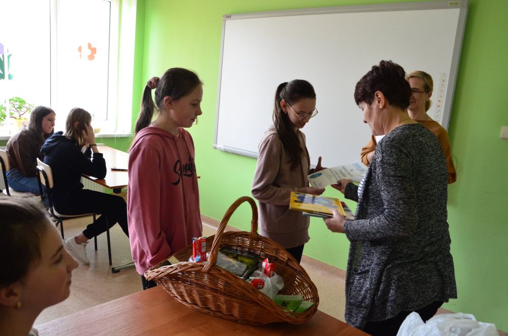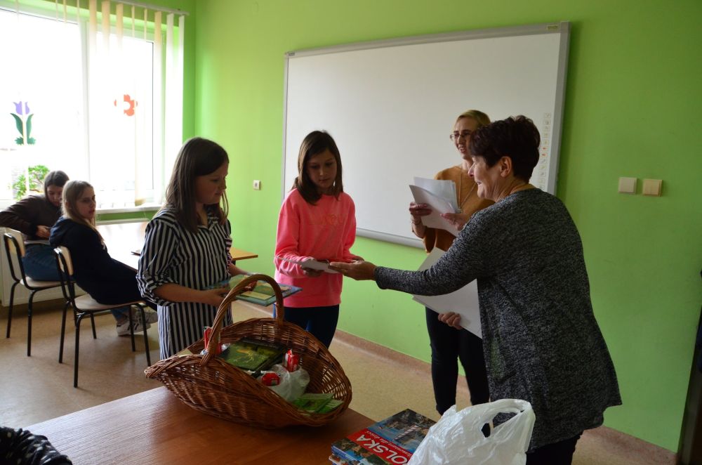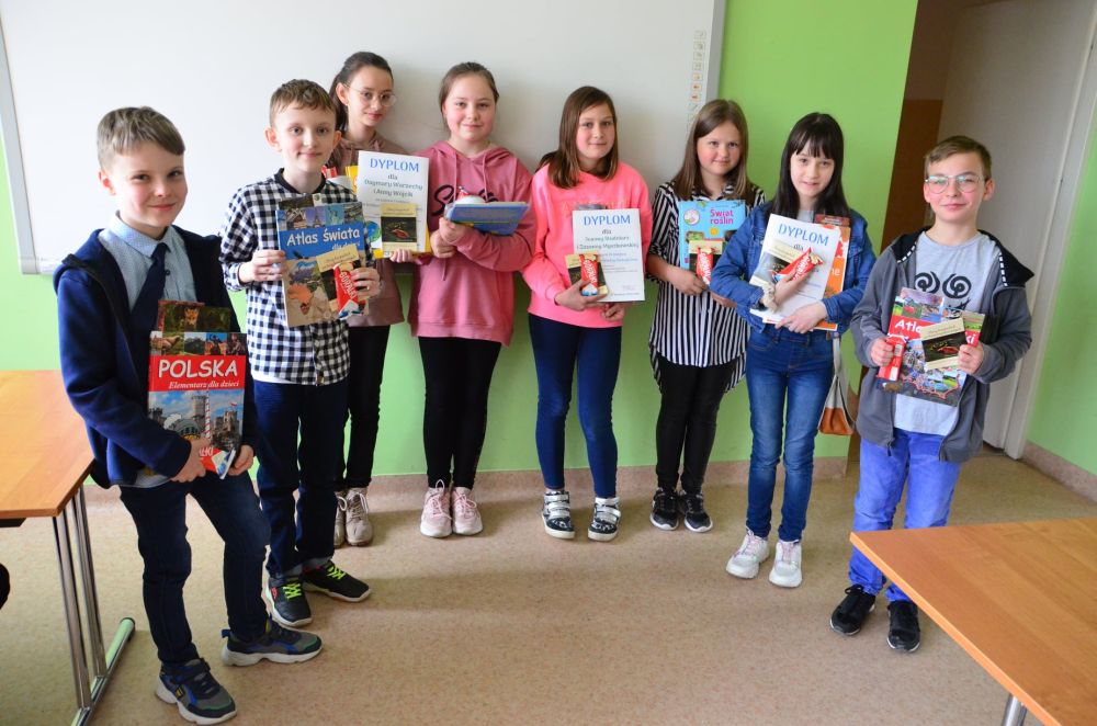 Z okazji Międzynarodowego Dnia Ziemi Gminne Centrum Kultury i Czytelnictwa zorganizowało konkursy dla dzieci i młodzieży z oddziałów przedszkolnych i klas I – VII. Konkurs wiedzy ekologiczno-przyrodniczej adresowany był do uczniów klas IV-VII. Każdą szkołę reprezentowały dwie dwuosobowe drużyny: jedna z kl. IV-V, druga z kl. VI-VII. Dlatego wcześniej w szkole odbyły się eliminacje, w których wzięło udział 13 osób. Uczennice, które uzyskały najlepsze wyniki reprezentowały naszą szkołę w konkursie gminnym.