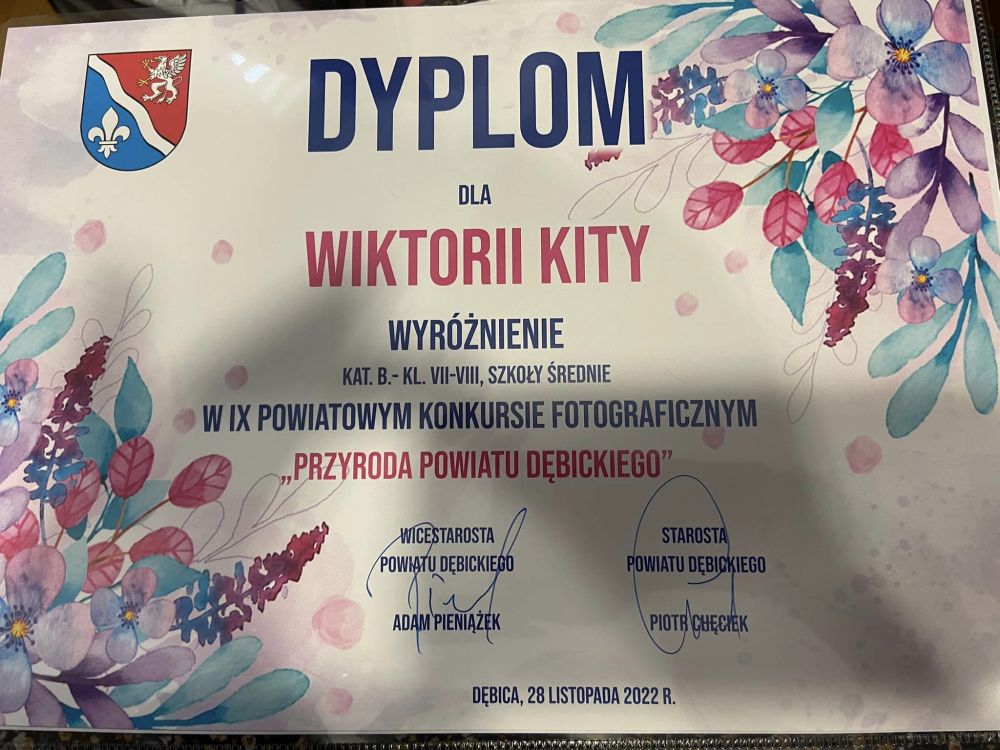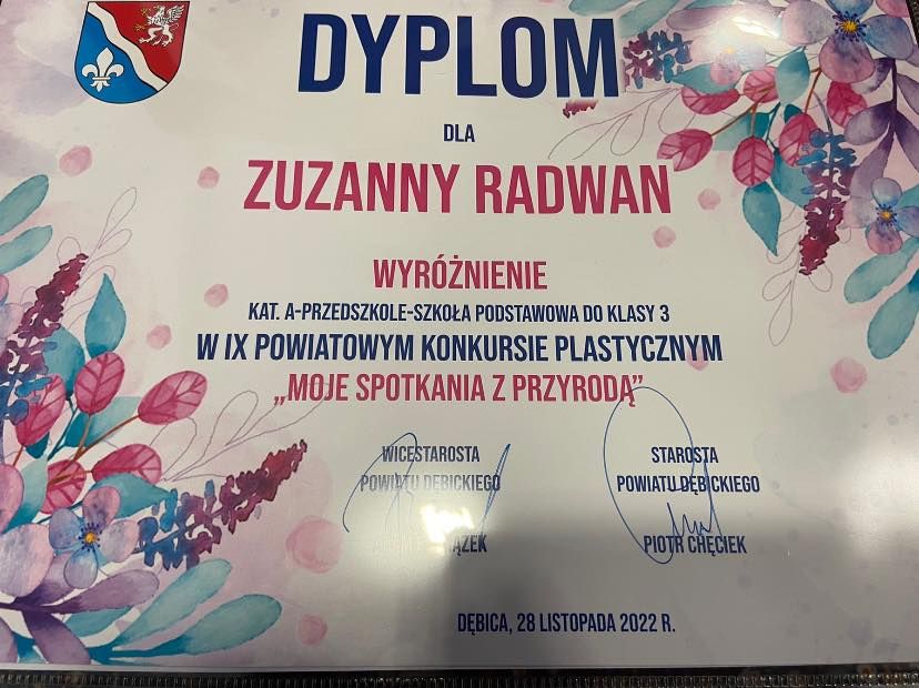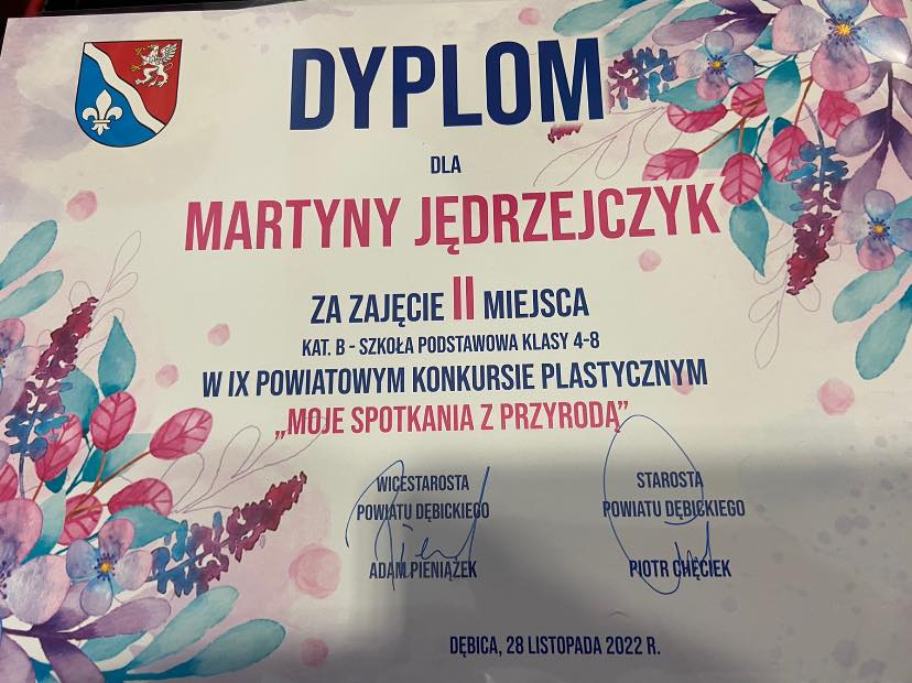 IX Konkurs Powiatowy Przyrodniczy oraz Fotograficzny Opublikowano: 29 listopad 2022 IX Powiatowy Konkurs Plastyczny "Moje spotkanie z przyrodą" oraz Fotograficzny "Przyroda powiatu dębickiego"Gratulacje dla nagrodzonych uczniów!!!