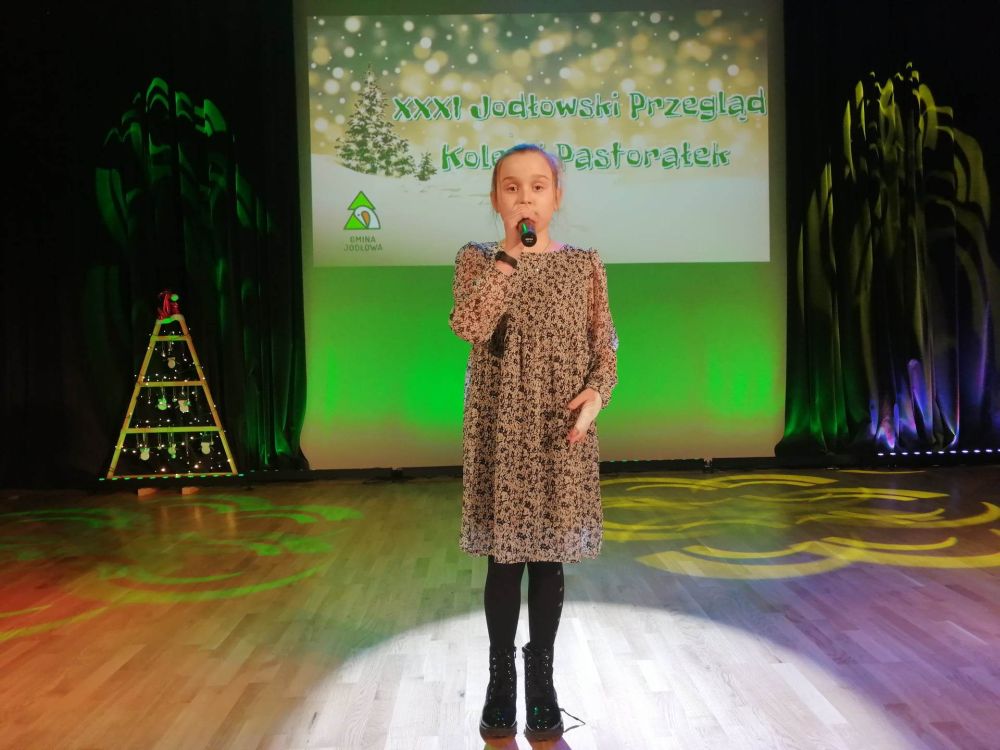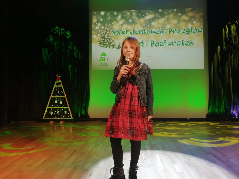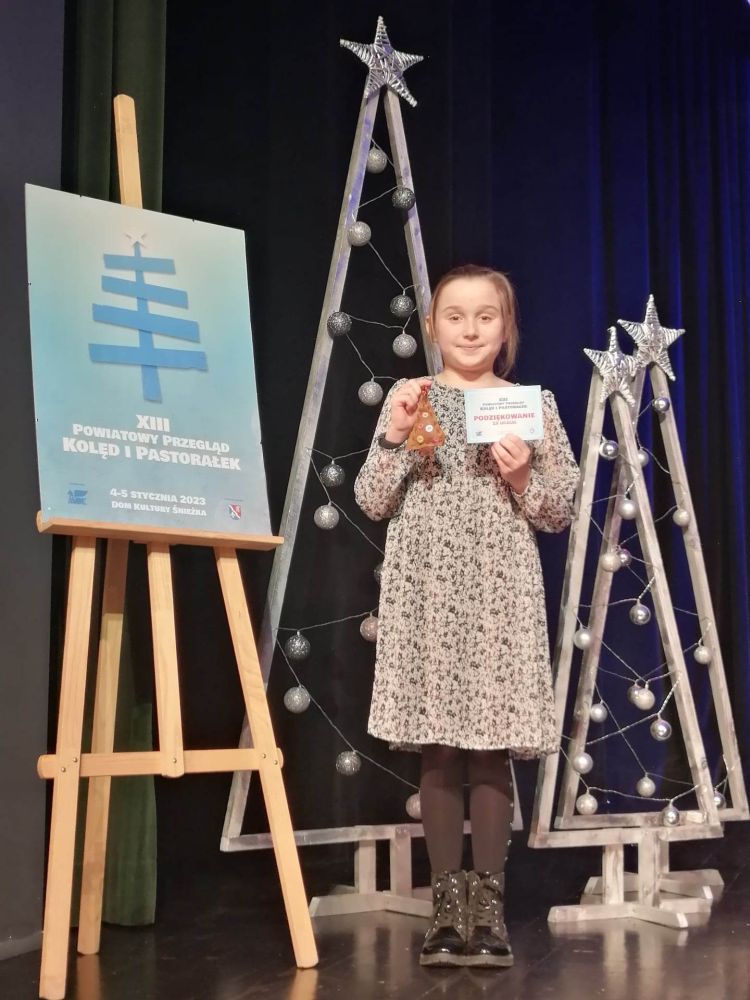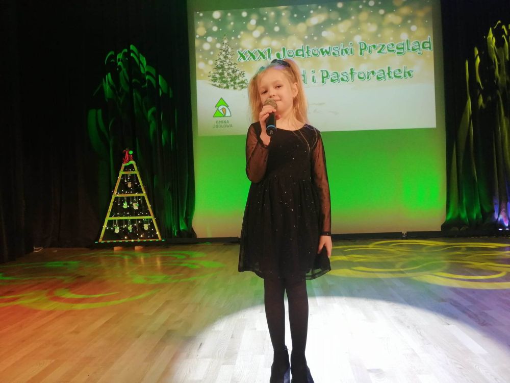 Kategoria I (kl. 0) - I miejsce Oliwia Kaczka. Oliwia zaśpiewała pastorałkę „Skrzypi wóz”.