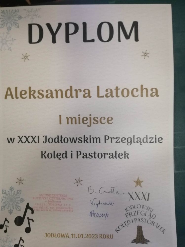 Kilka dni wcześniej Aleksandra Latocha (kl.4) wzięła udział w Powiatowym Konkursie Kolęd i Pastorałek w Dębicy.