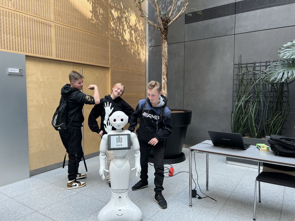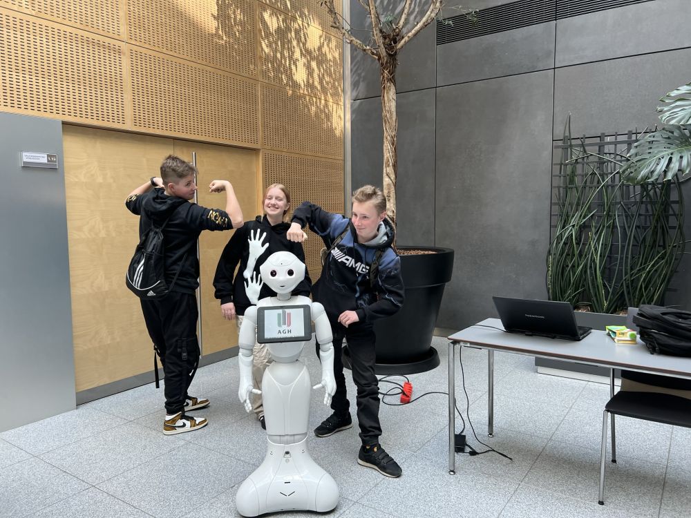 Michał Buras, Zuzanna Nowak i Oskar Furman, przez trzy godziny rozwiązywali trudne zadania algorytmiczne. Po zmaganiach konkursowych mieli okazję podziwiać robota humanoidalnego o nazwie Pepper.